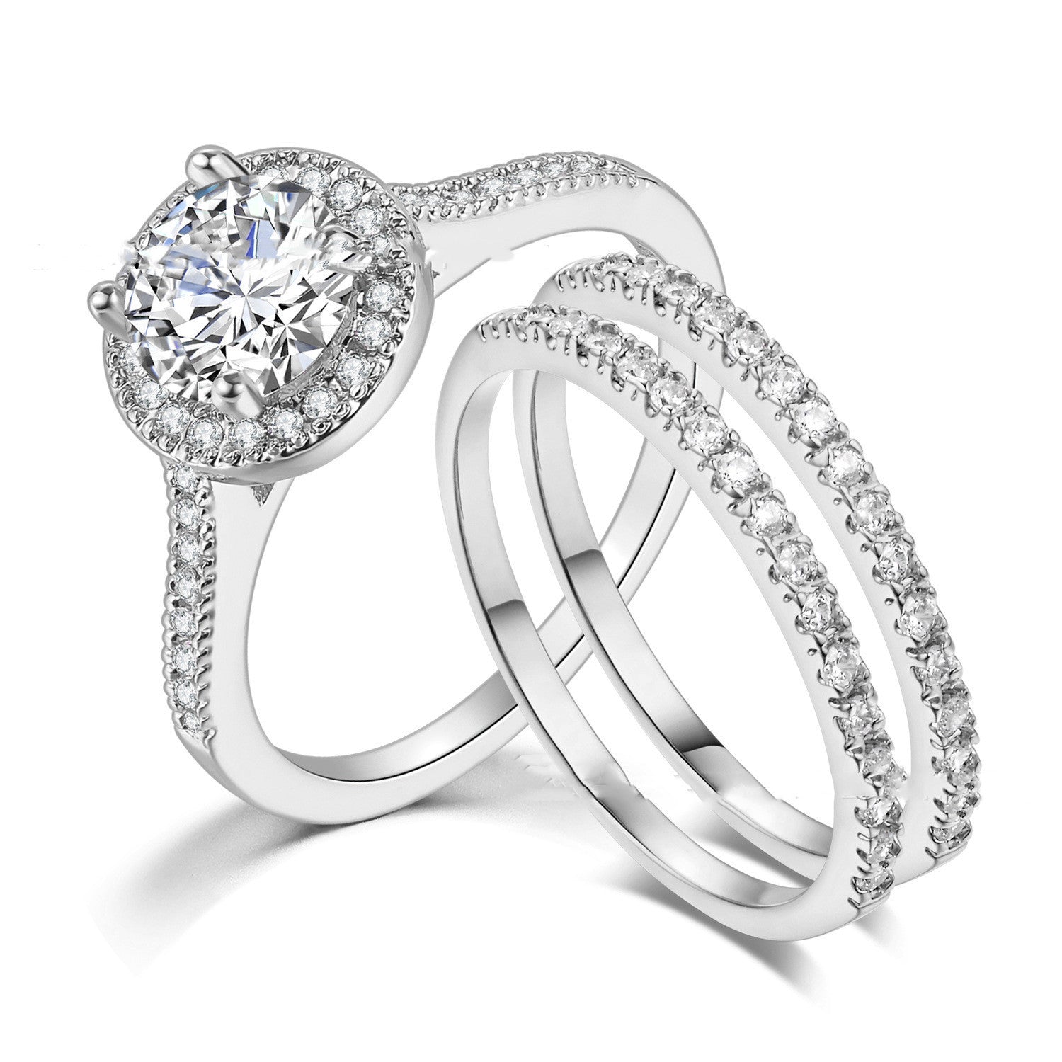 Womens Geometric Zircon Inlaid Engagement Ring Set Copper Ring 3 Piece Rose Gold And White Gold Jewelry Shines