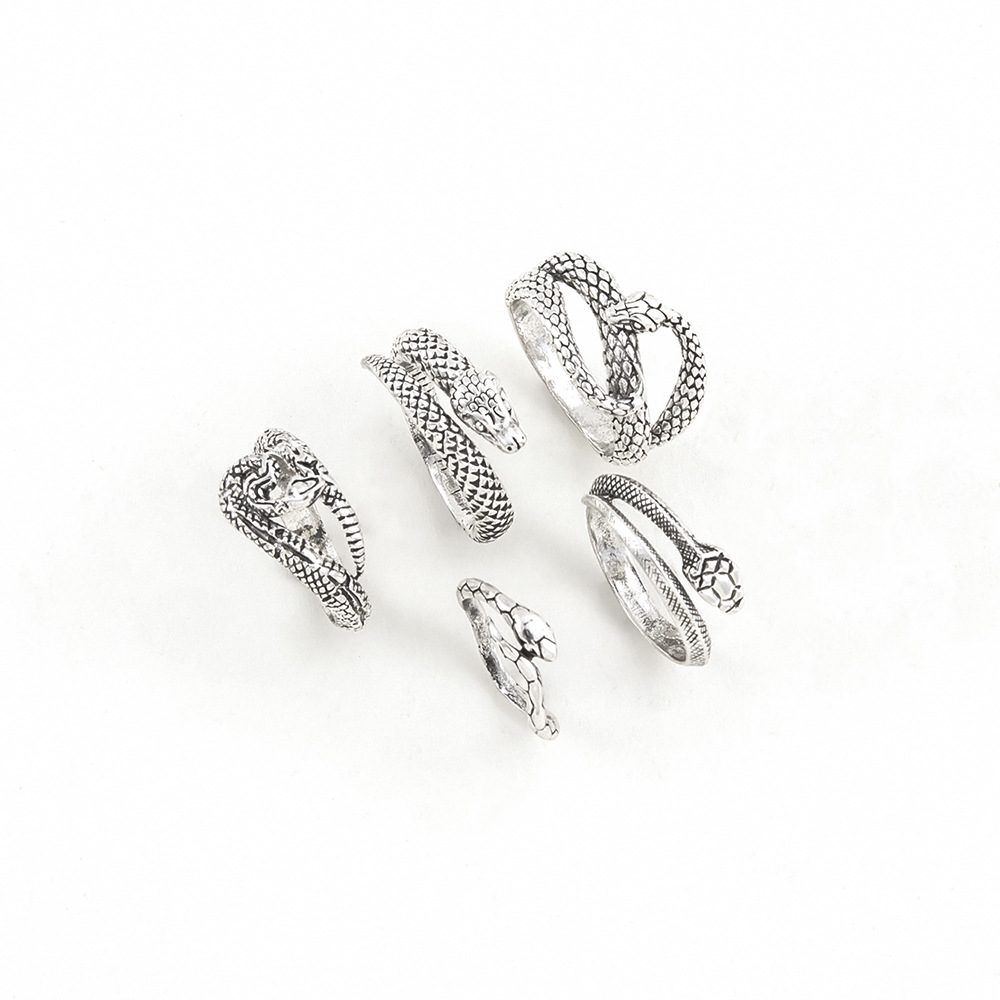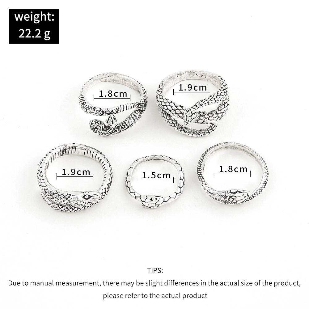 Electroplated Alloy Ring Set Geometric Snake Rings Vintage European American Style 5 Piece Free Shipping Today