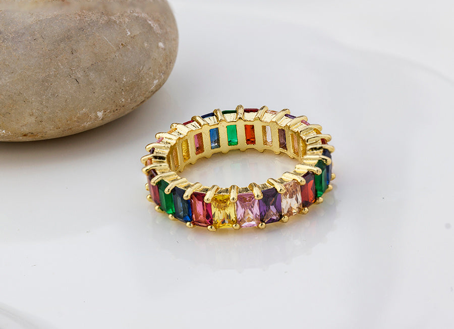 Copper Ring With Zircon Inlay Golden Finish For Women Girls Elegant Jewelry Gift For Her Anniversary Ring Gift