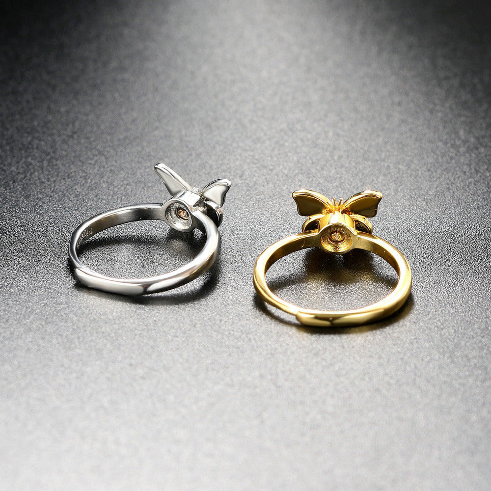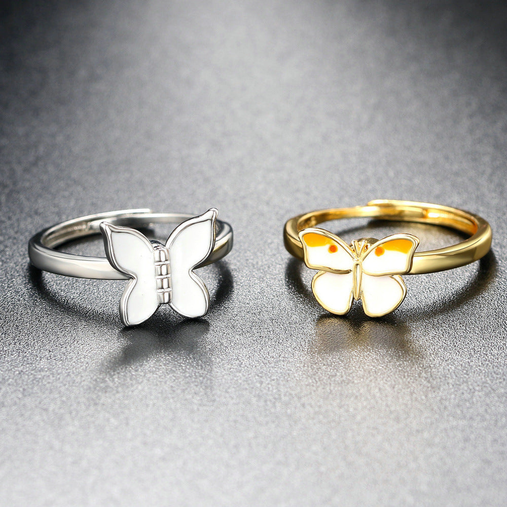 Womens Copper Inlaid Zircon Butterfly Ring Drip Oil Adjustable Opening Trendy Fashion Jewelry Gift for Her Now