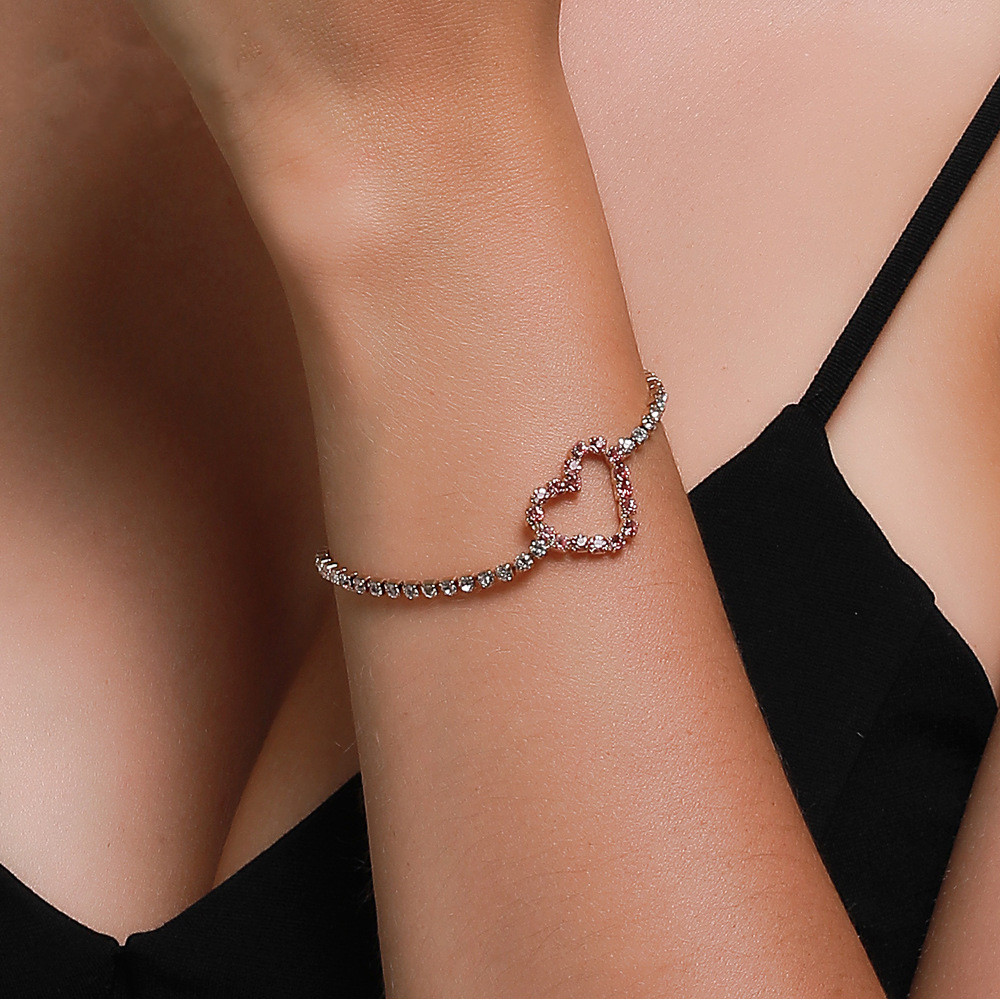 Womens Alloy Bracelet Heart Shaped Zirconia Love Design Elegant Wristband Fashion Jewelry Electroplated Finish