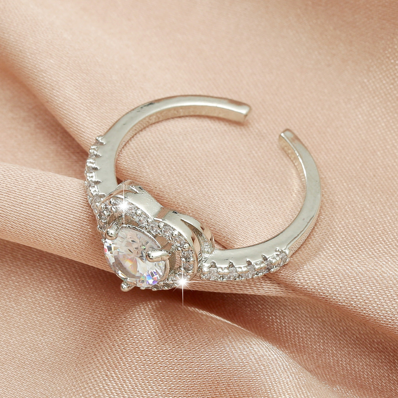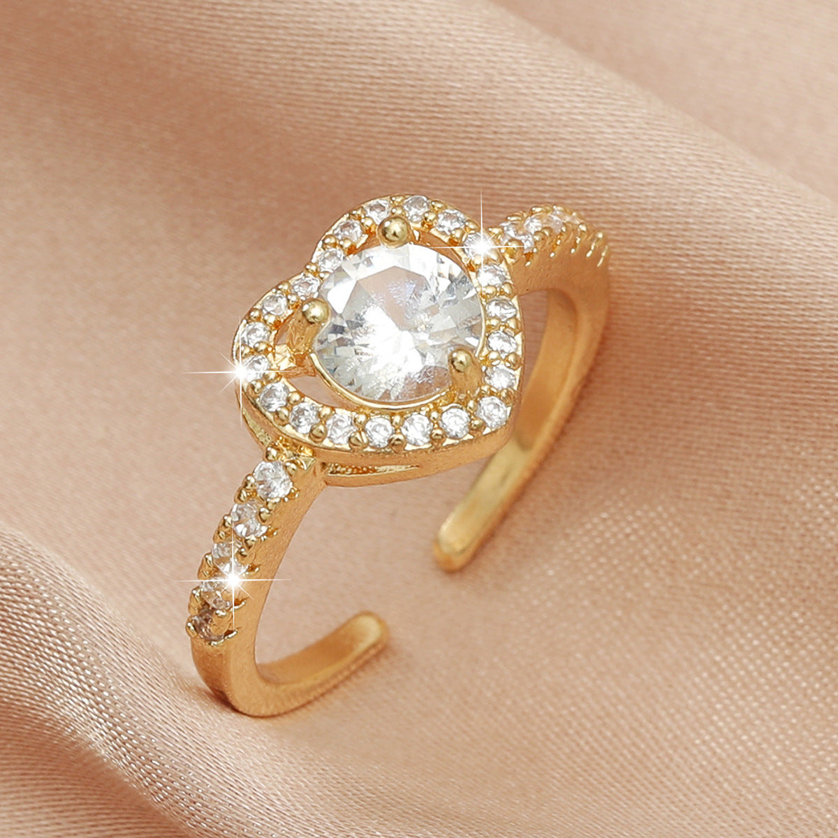 Adjustable Copper Geometric Ring With Diamond Inlay Retro Love Ring For Women Alloy Gemstone Jewelry Gift Statement