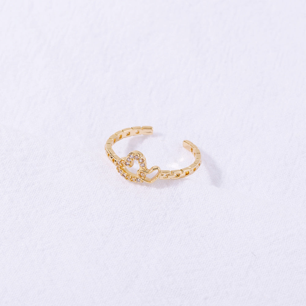 Womens Golden Heart Ring With Zircon Inlay Adjustable Copper Love Ring Simple Band Anniversary Gift Shine Love