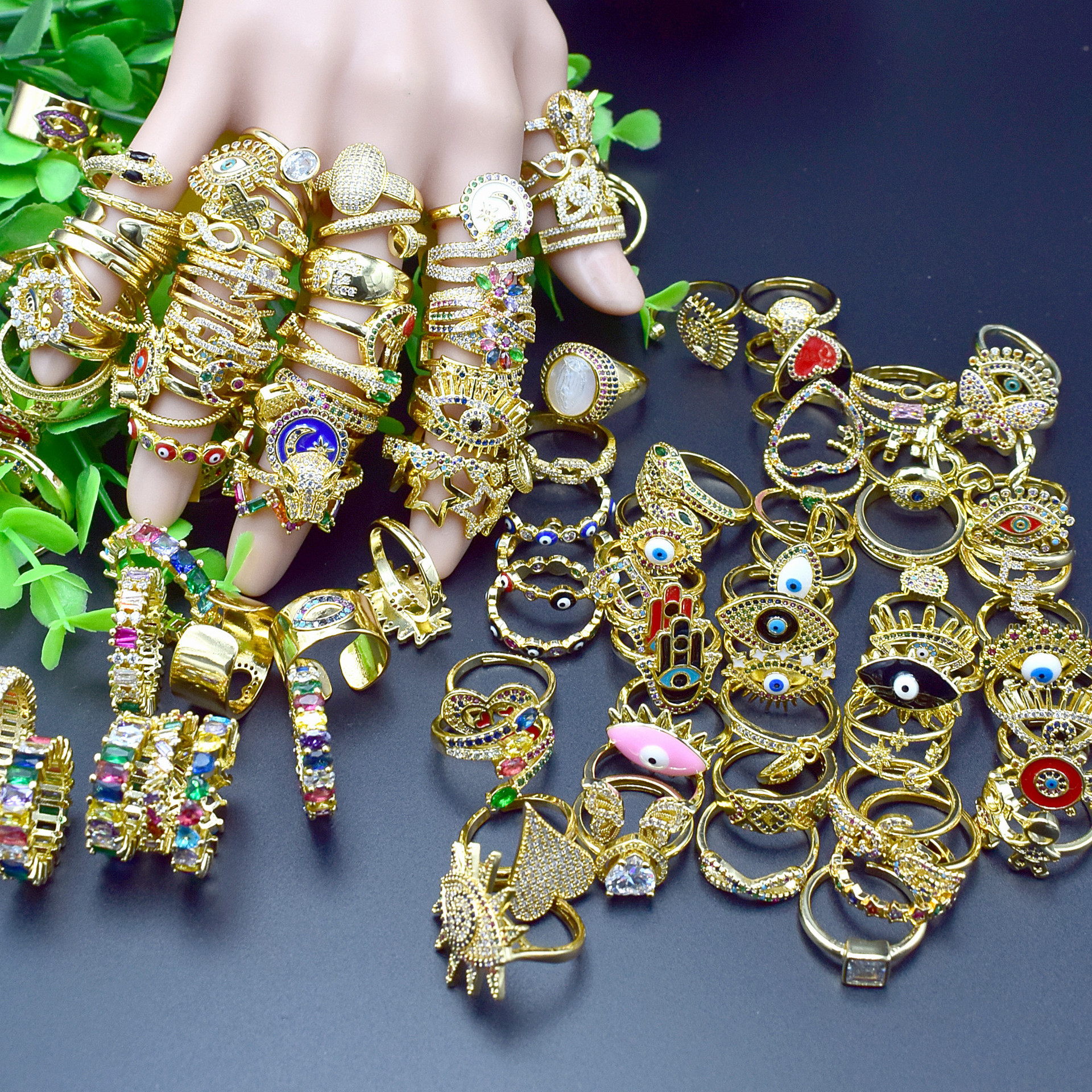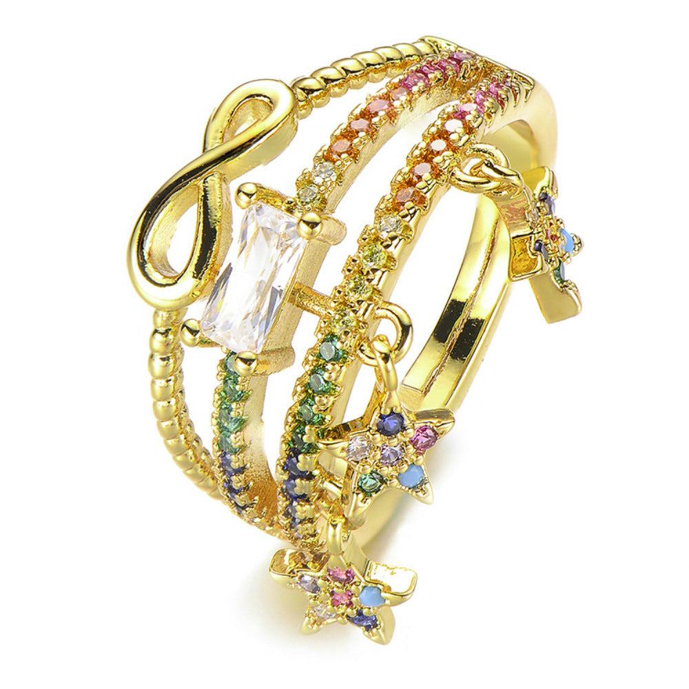 Copper Gold Plated Zircon Ring For Women Adjustable European American Style Fashion Jewelry Gift Micro Inlaid