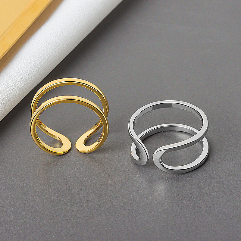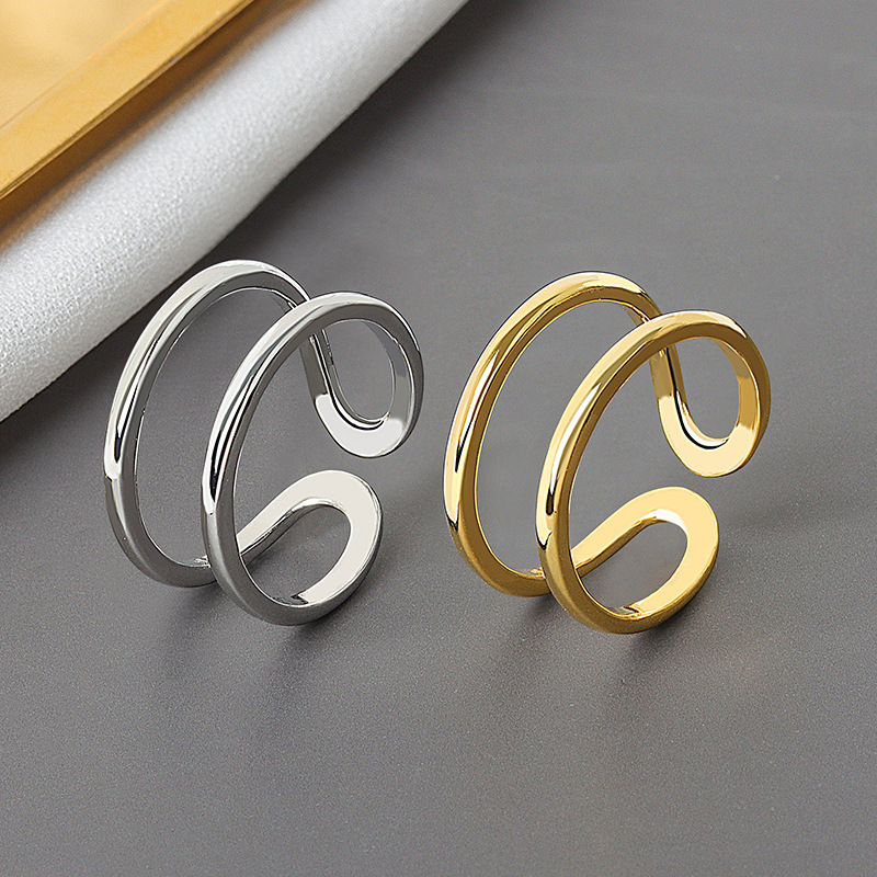 Adjustable Copper Ring With Double Thin Line Design In Platinum And Gold OpeningBand For Her Daily Style Today