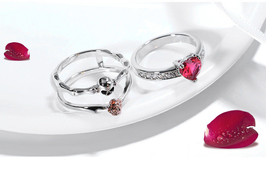 Womens Heart Shaped Zircon Ring Two In One Geometric Copper Electroplated Fashion Jewelry Gift Holiday Sparkle