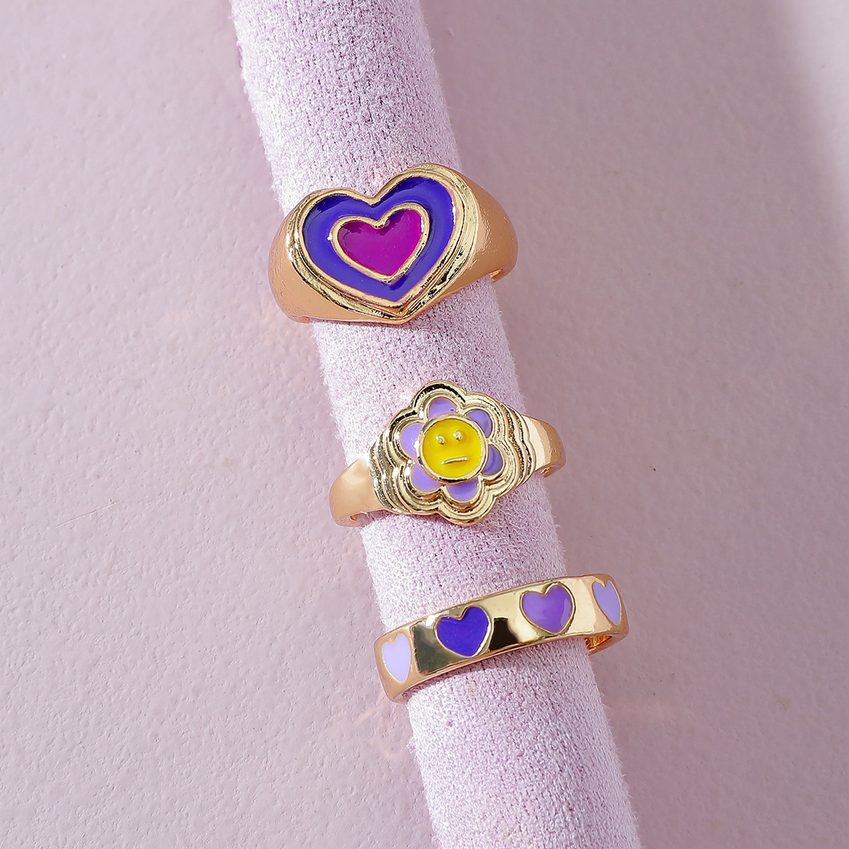 Peach Heart Ring Set Geometric Agate Inlaid Alloy Jewelry