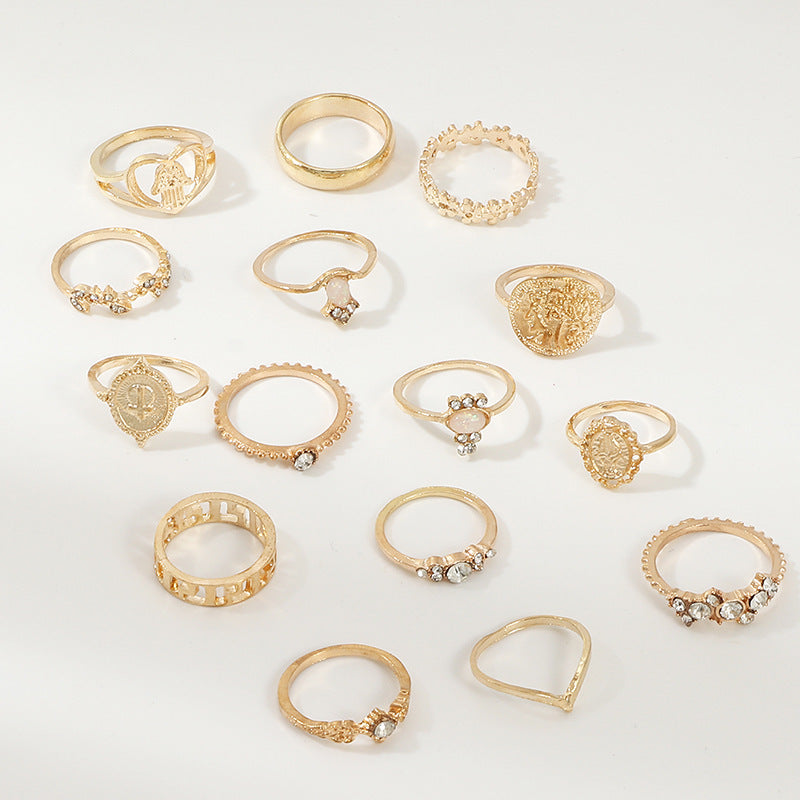 Women Retro Ring Set Alloy Electroplated Love Branch Bergamot Design European American Style Jewelry Everyday