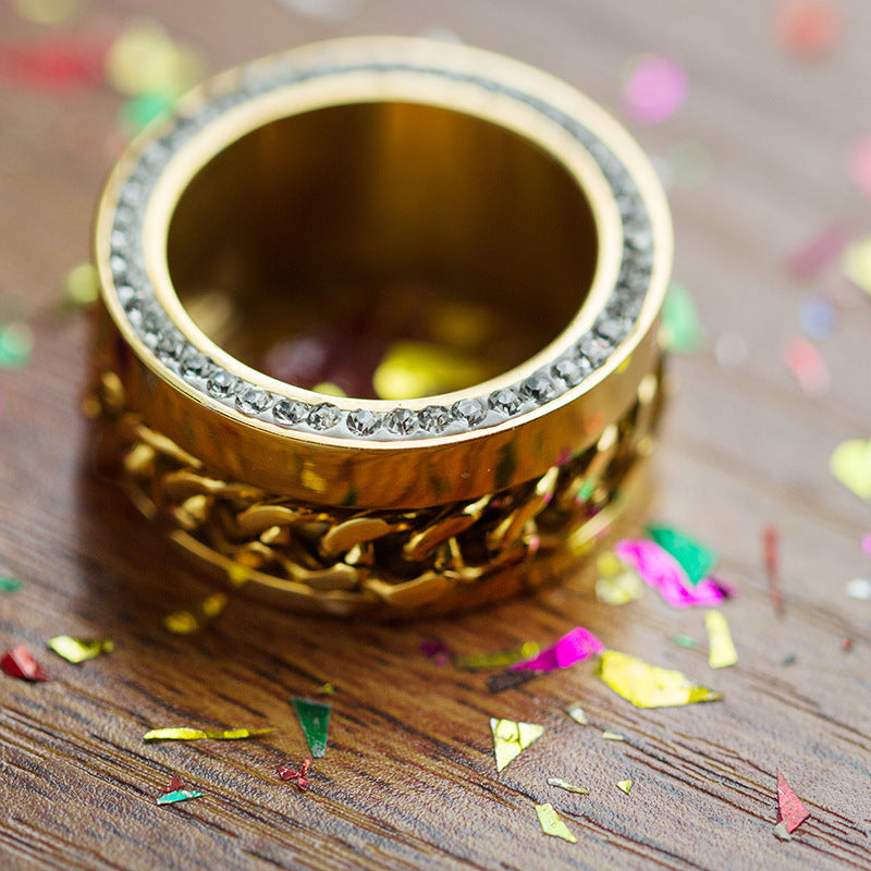 Geometric Ring For Women Girls Stainless Steel Electroplated Ring With Side Stick Drill Detail European Fashion