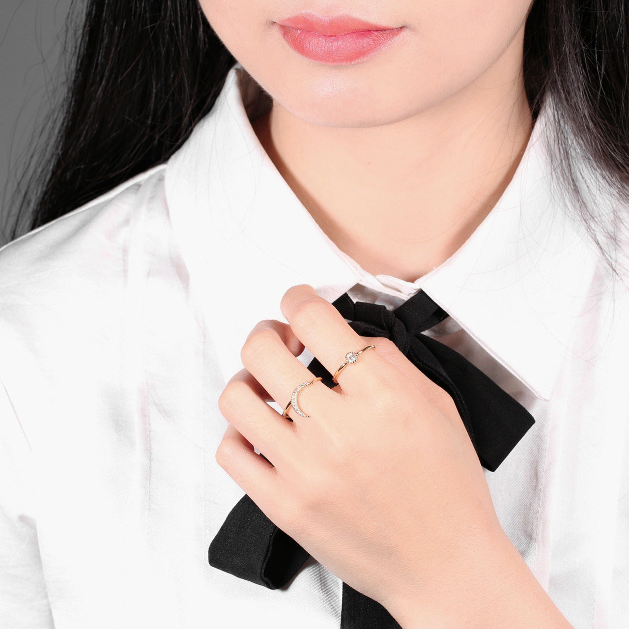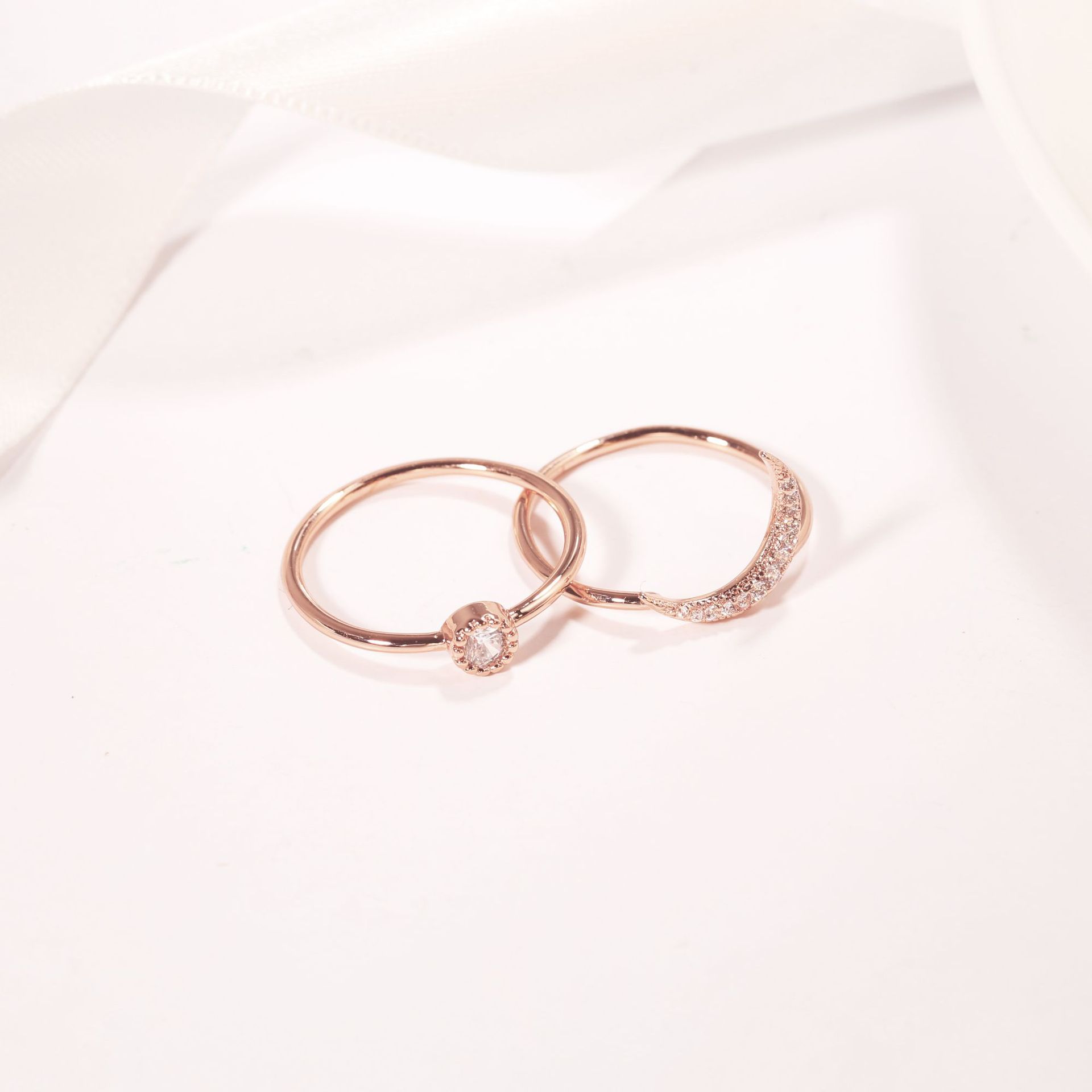 Womens Ring Sun Moon Crystal Inlaid Gold Plated Fashion Jewelry Geometric Design Elegant Durable Versatile Unique
