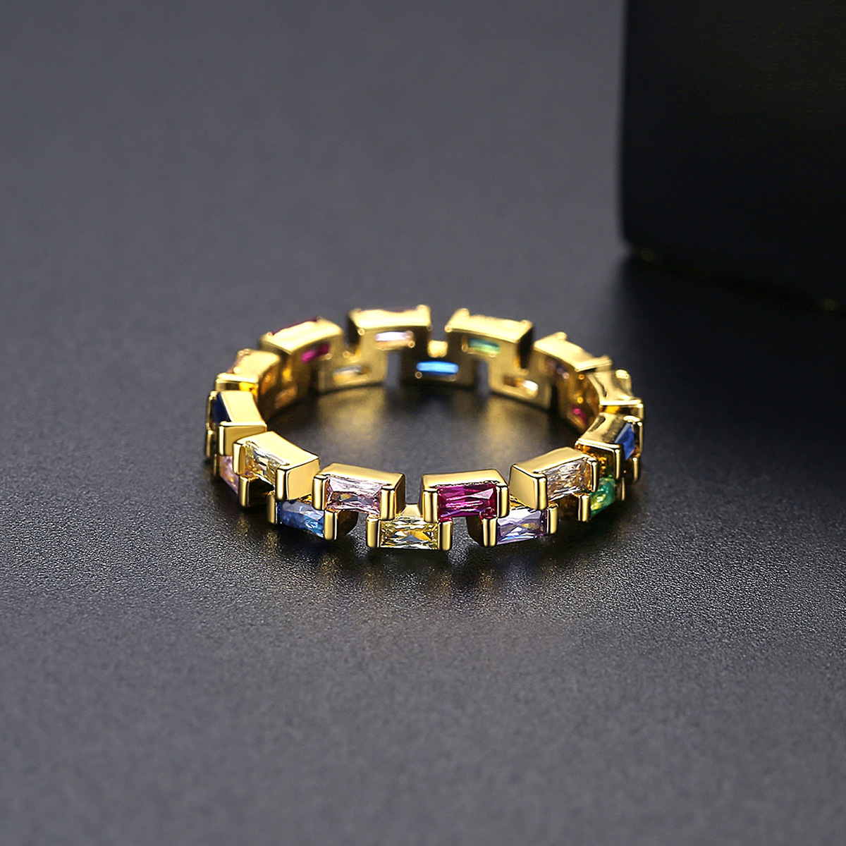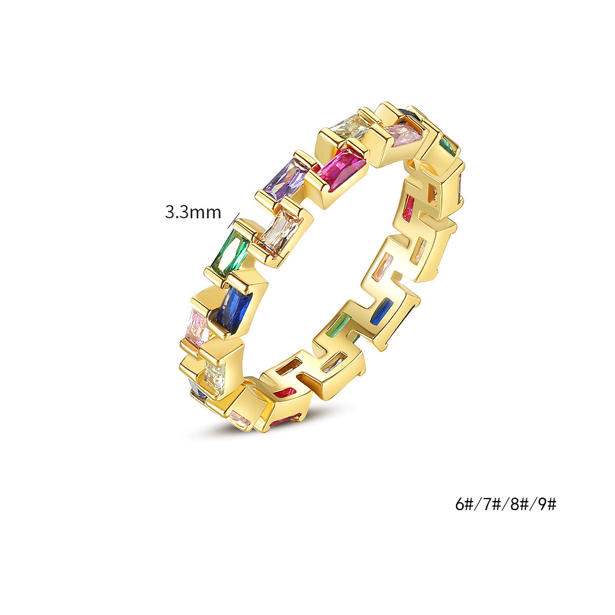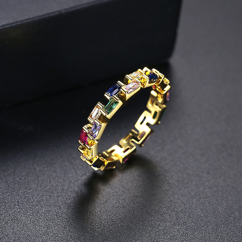 Womens Gold Plated Ring With Color Zircon Geometric Design Fashion Jewelry For Daily Wear And Special Occasion