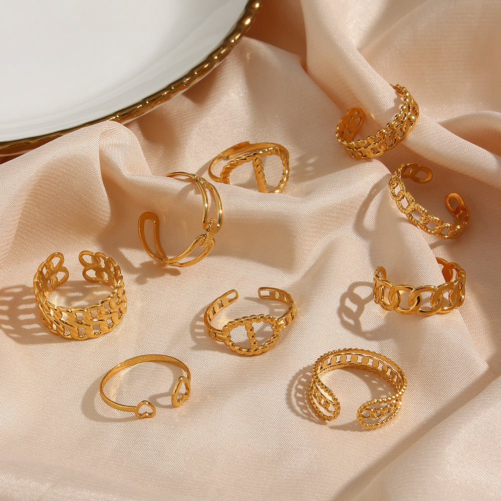 Womens Adjustable Open Ring Gold Tone Chain Design Stainless Steel Jewelry Fashion Ring Everyday Jewelry Trend