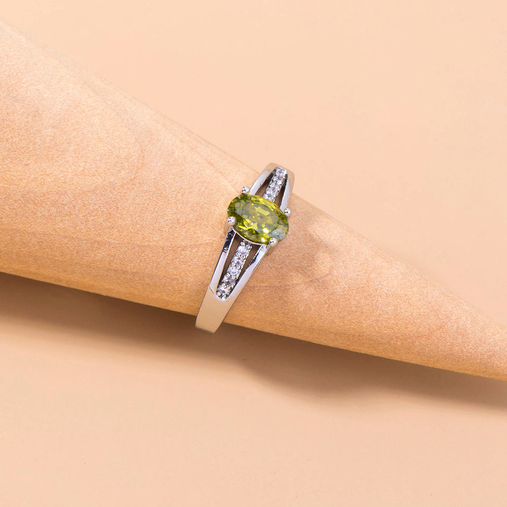 Womens Adjustable Copper Rings Oval Green Gem Micro Inlaid Zircon European Fashion Rings Adjustable Fit Copper