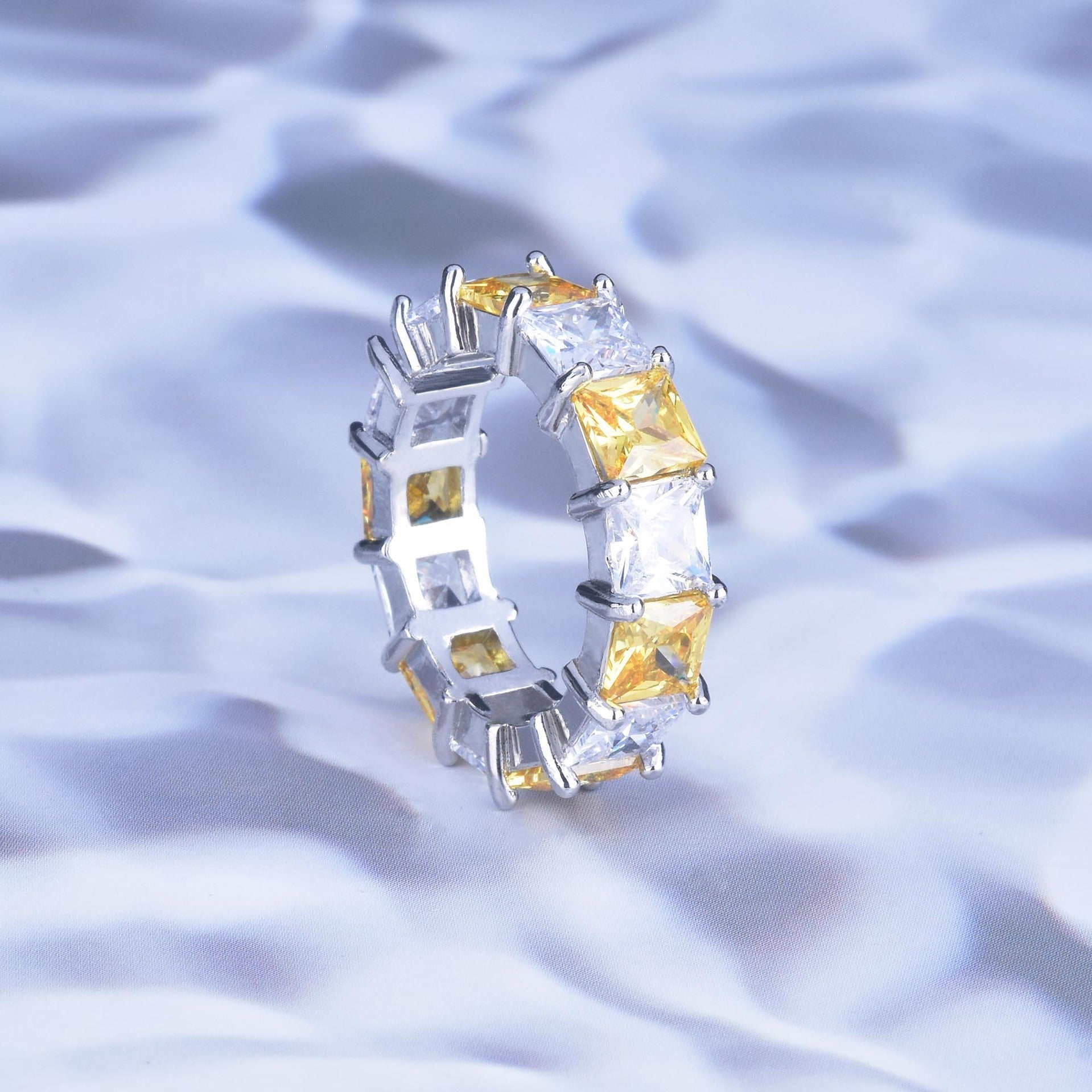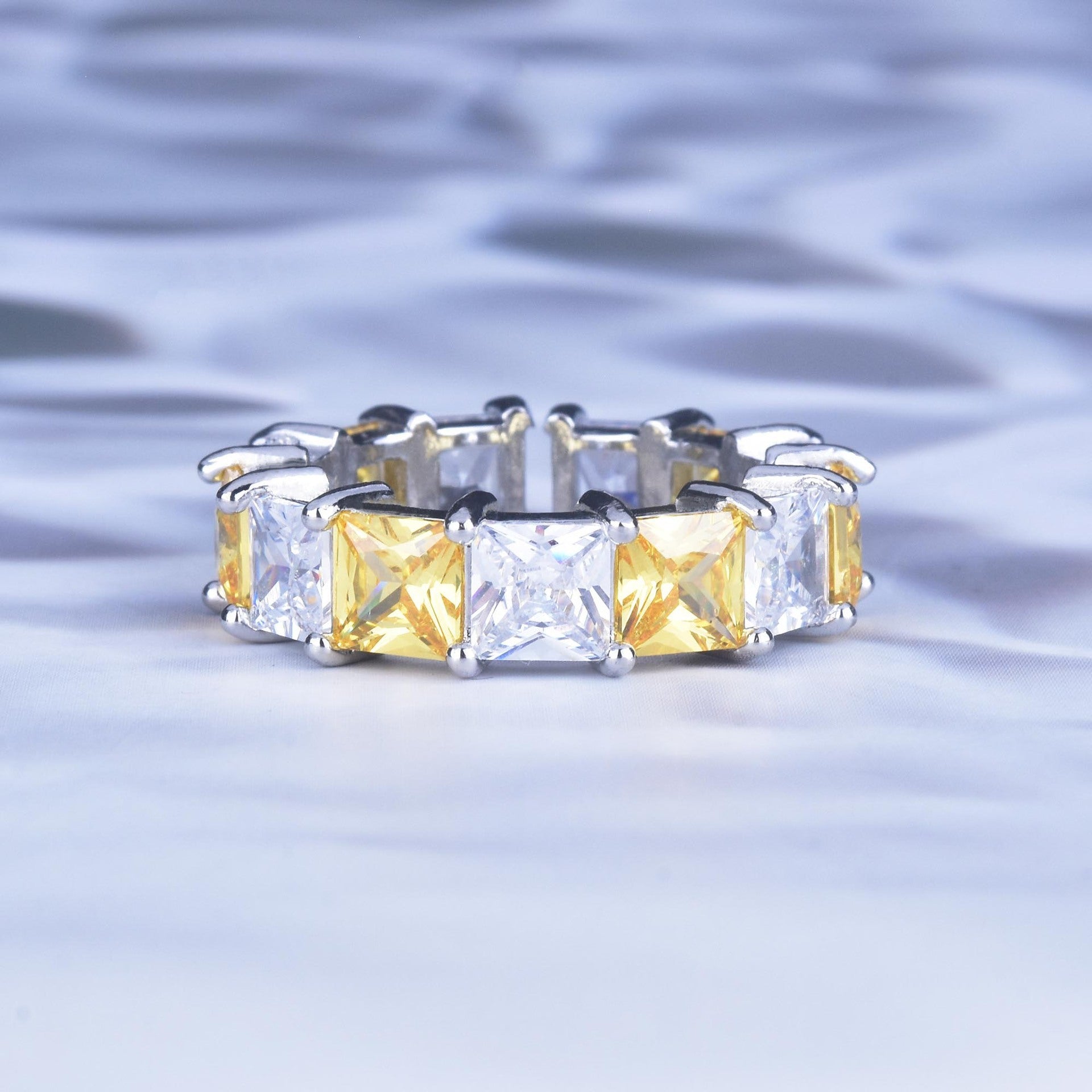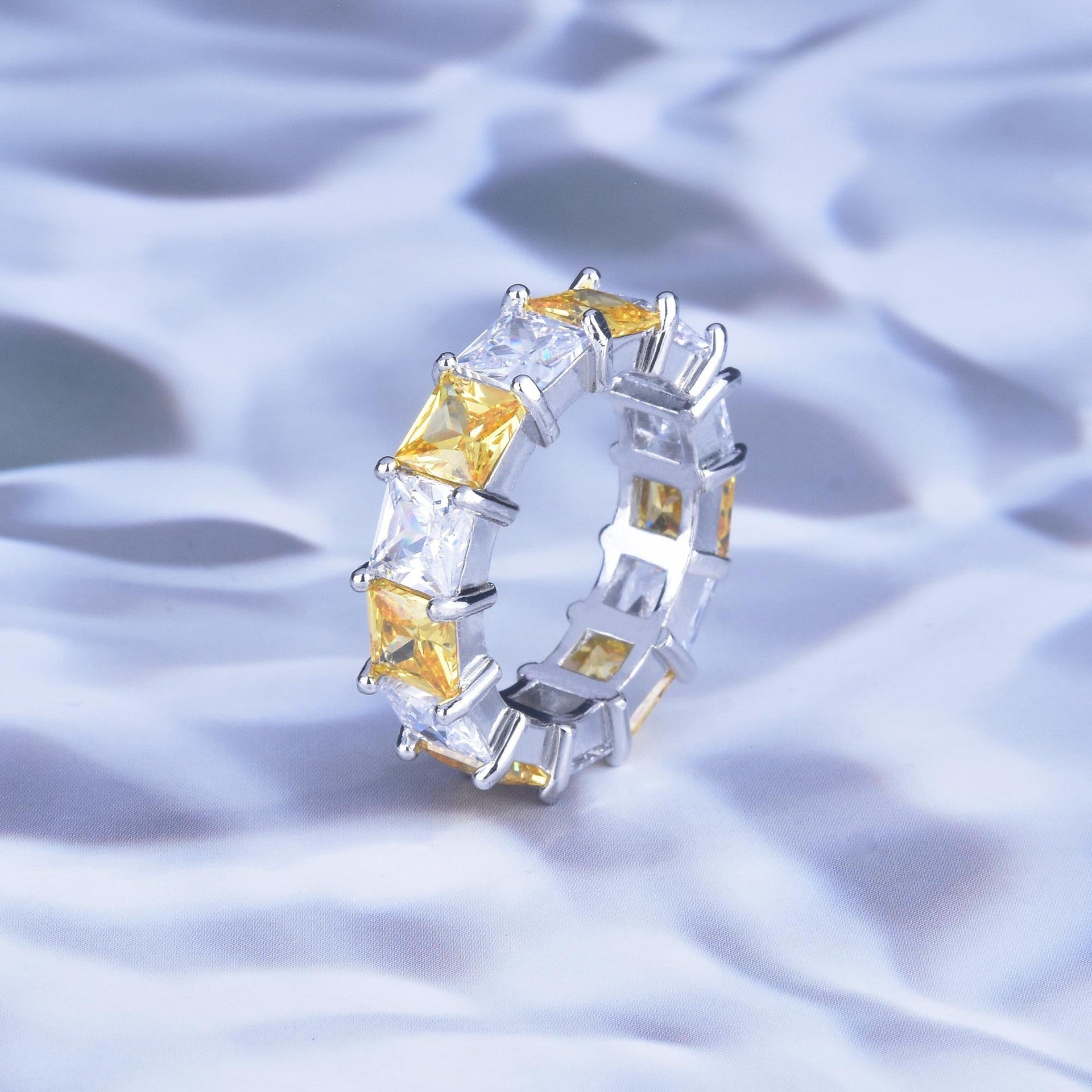 Womens Copper Ring Princess Diamond Row Geometric Design Fashion Statement Jewelry Gift For Her Everyday Wear