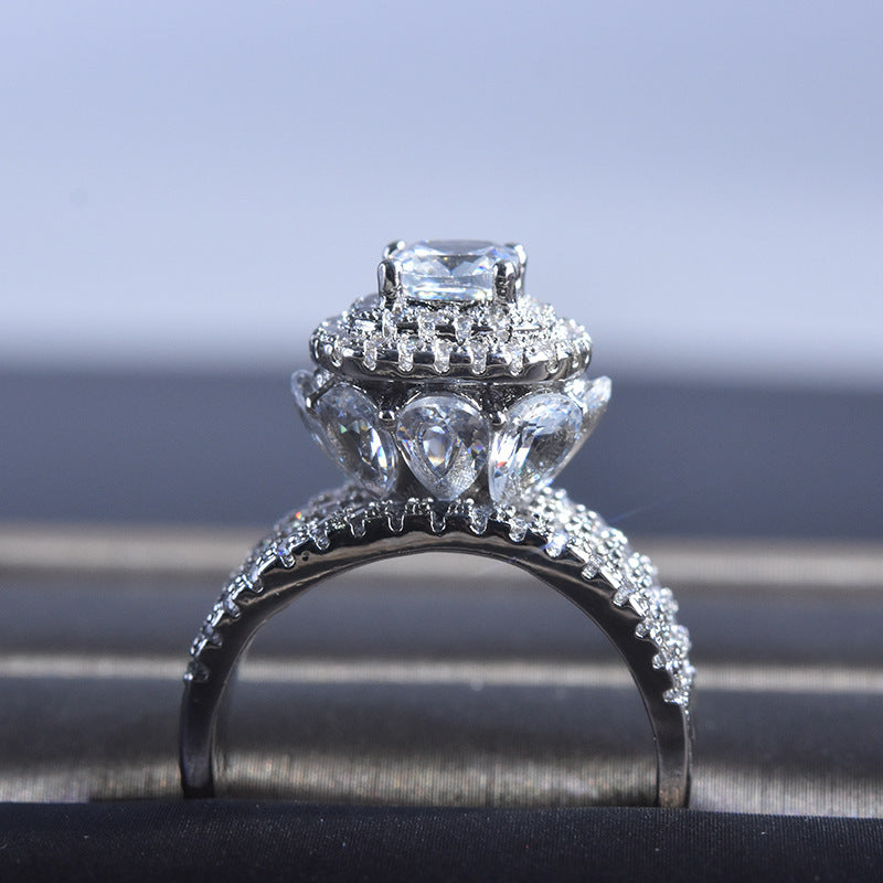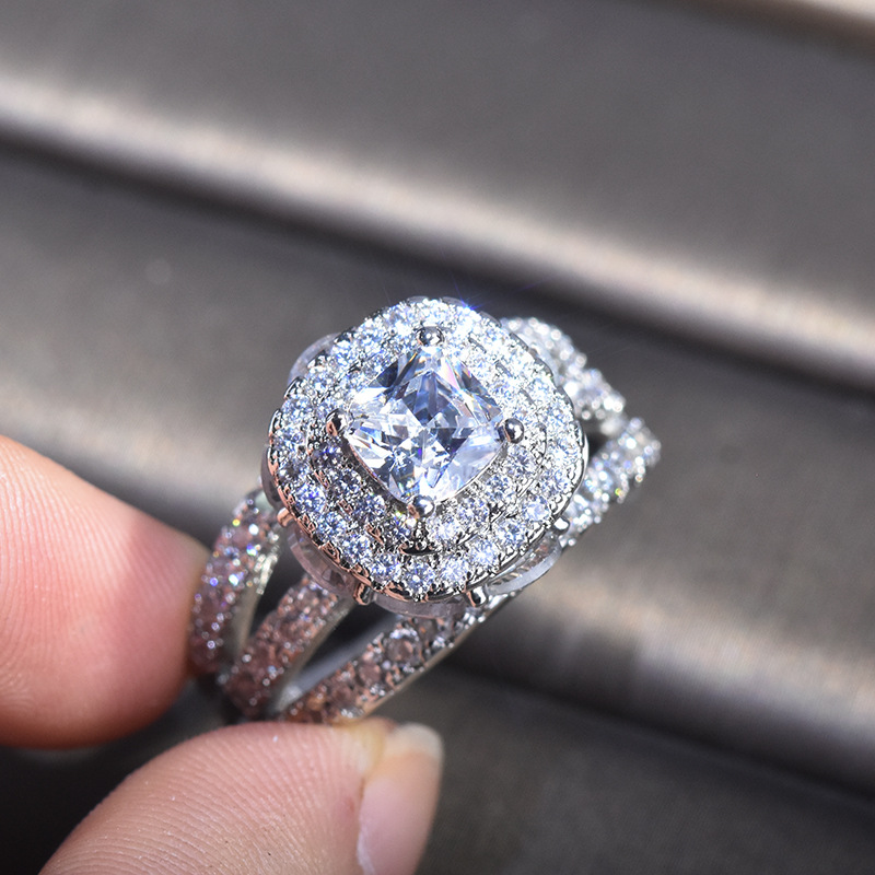 Women Three Layer Diamond Geometric Ring Copper Base Sterling Silver Inlay Jewelry European Design Gift Allure