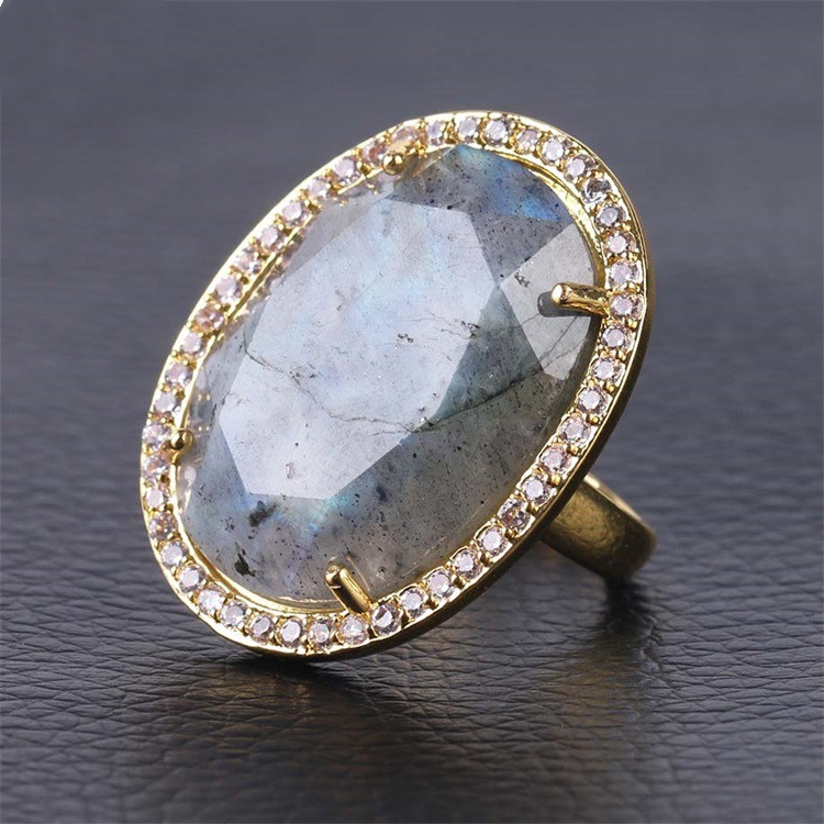 Womens Natural Stone Gold Plated Rhinestone Ring With Cut Gemstone Elegant Fashion Jewelry Accessory for Women