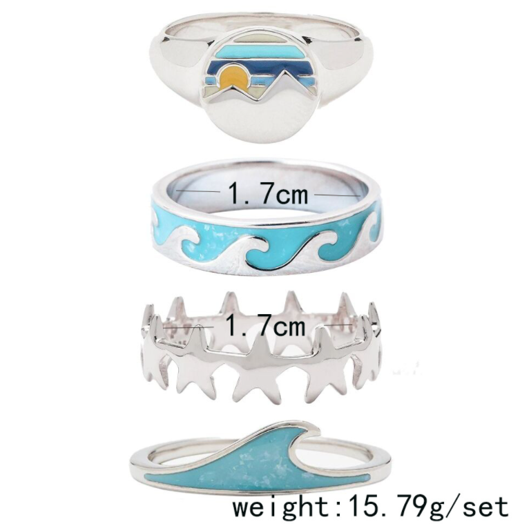 Womens Fashion Rings Set Four Pieces Trendy Alloy Electroplated Wave Rings Ins Statement Knuckle Rings For Women