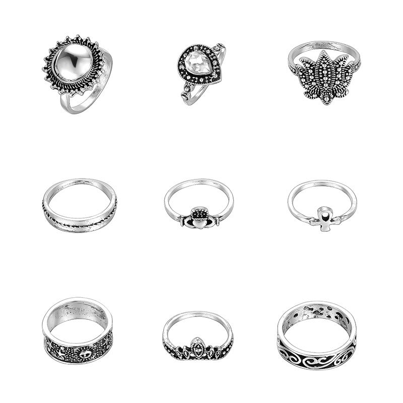 Womens Geometric Ring Set Retro Alloy Rings Punk Vintage Knuckle Ring Set Fashion Jewelry Gift Idea Styles Included