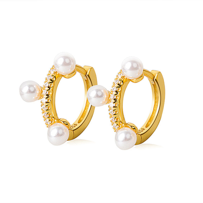 Womens Pearl Geometric Dangle Earrings Copper Inlaid Artificial Gems Fashion Jewelry Trendy Elegant Gift For Her