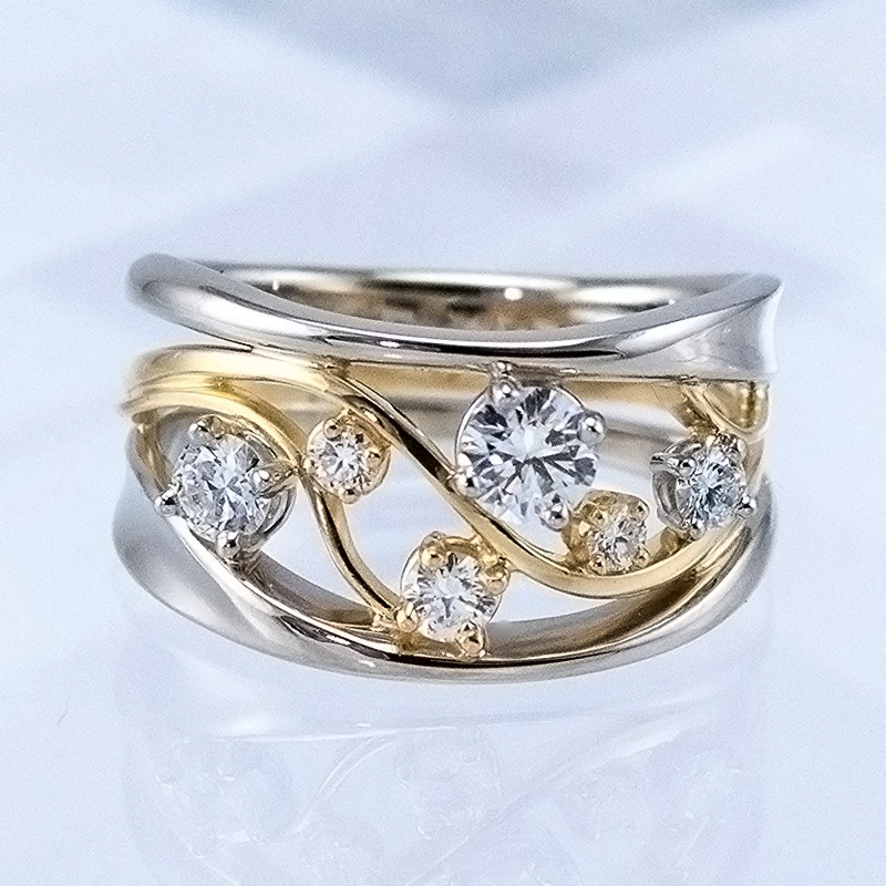 Two Tone Copper Ring Geometric Inlaid Zircon Rings European American Fashion Jewelry Gift For Her Copper Style