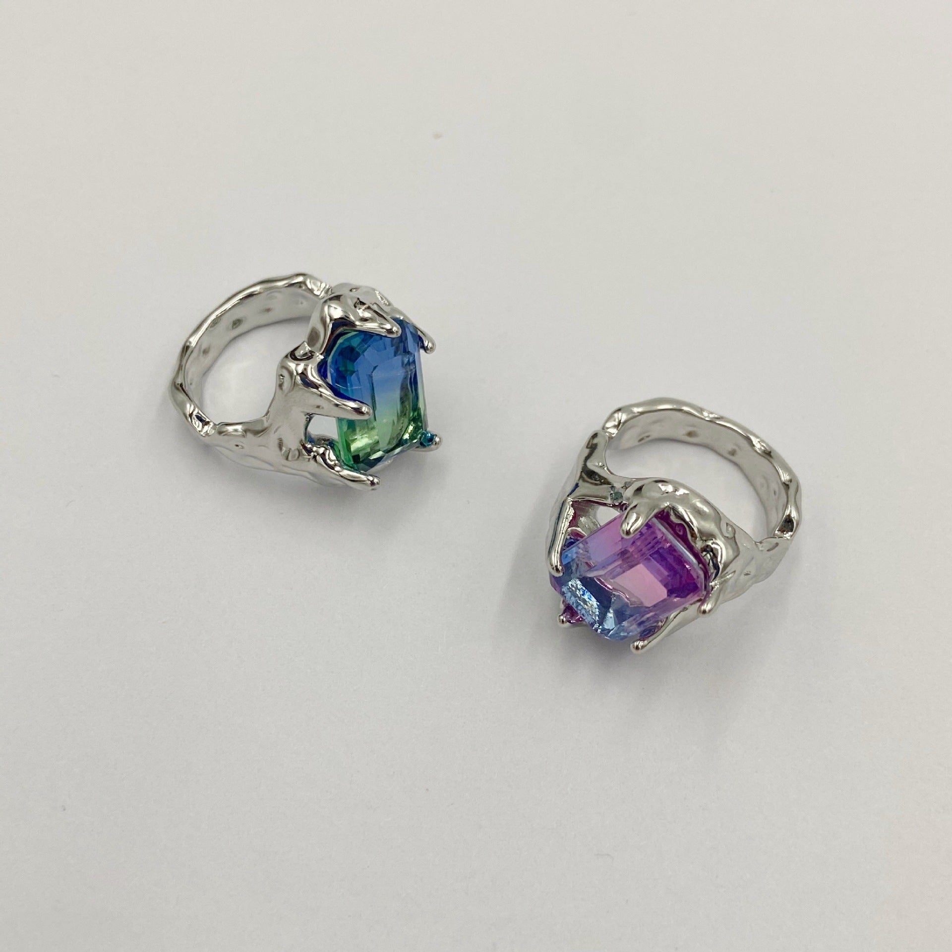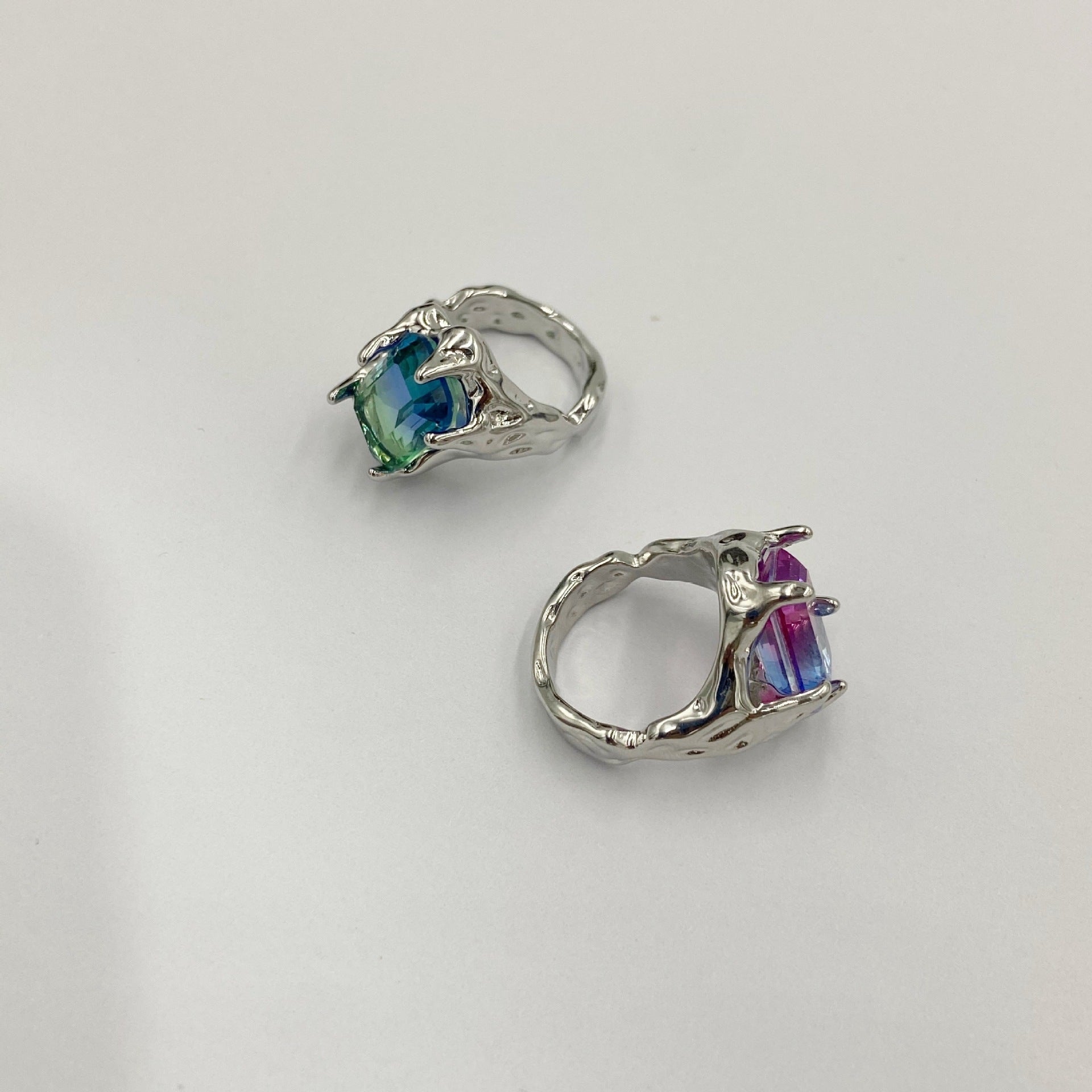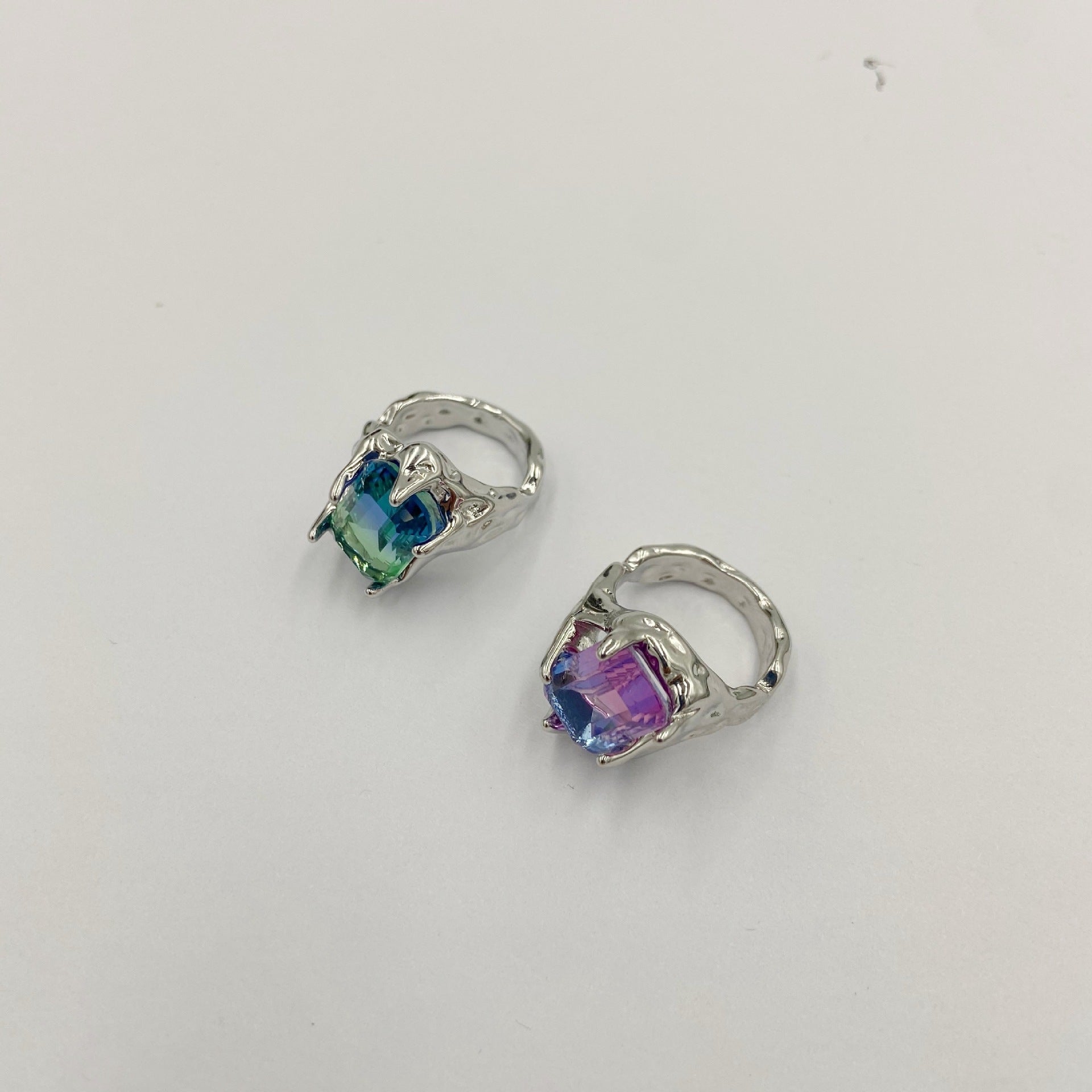 Unisex Retro Rhinestone Ring Metal Copper Plated Zircon Diamonds Irregular Design Pink Purple Blue Green Jewelry