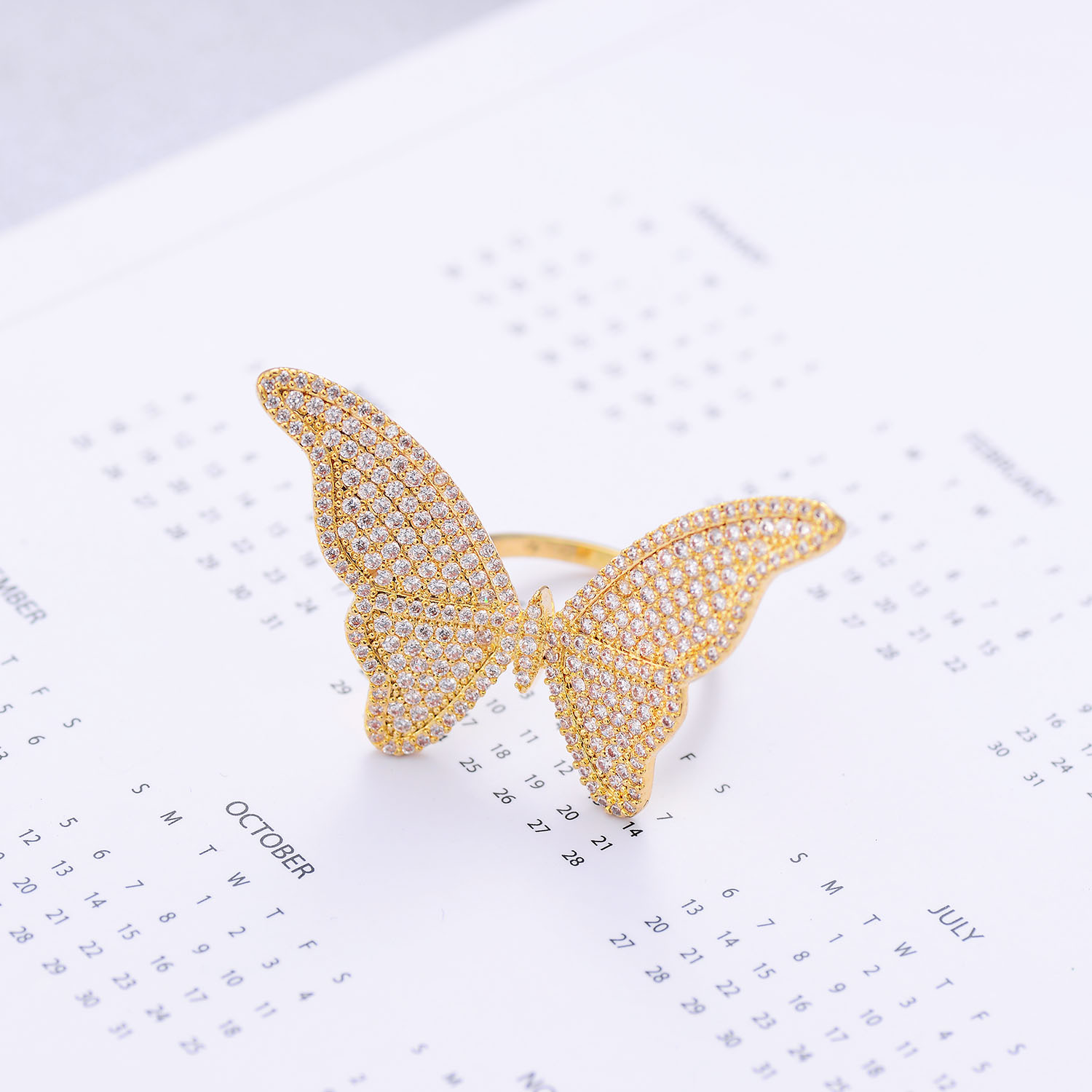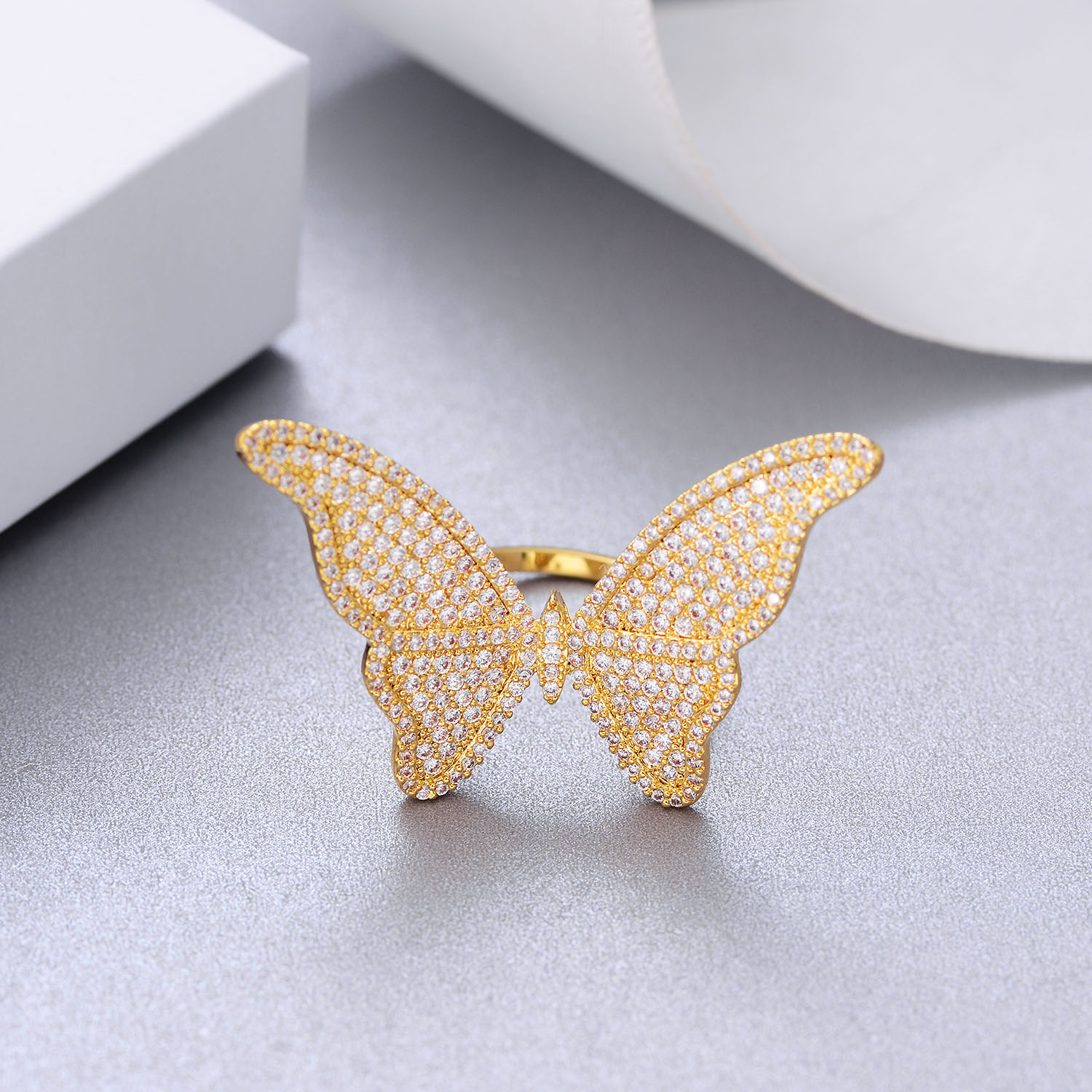 Butterfly Copper Ring With Zircon Inlaid Korean Fashion Jewelry Gift For Her Individually Packed Ring Daily Wear