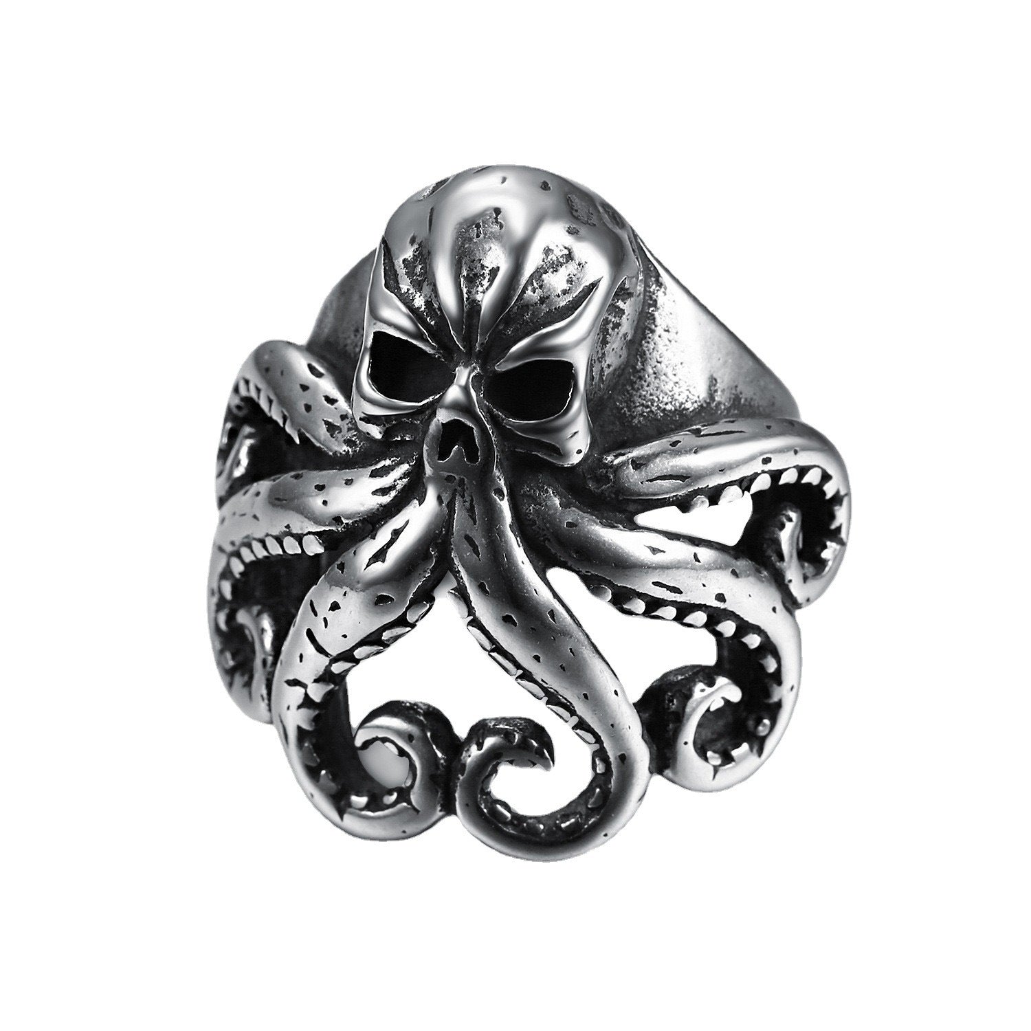 Punk Skull Ring Adjustable Retro European American Antique Silver Alloy Statement Jewelry For Edgy Street Style