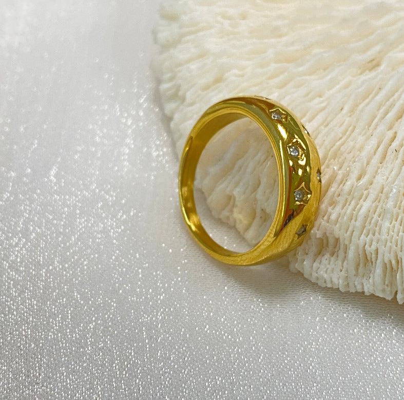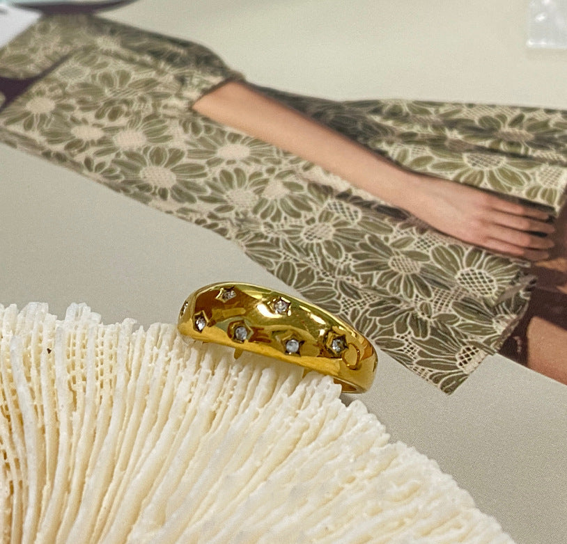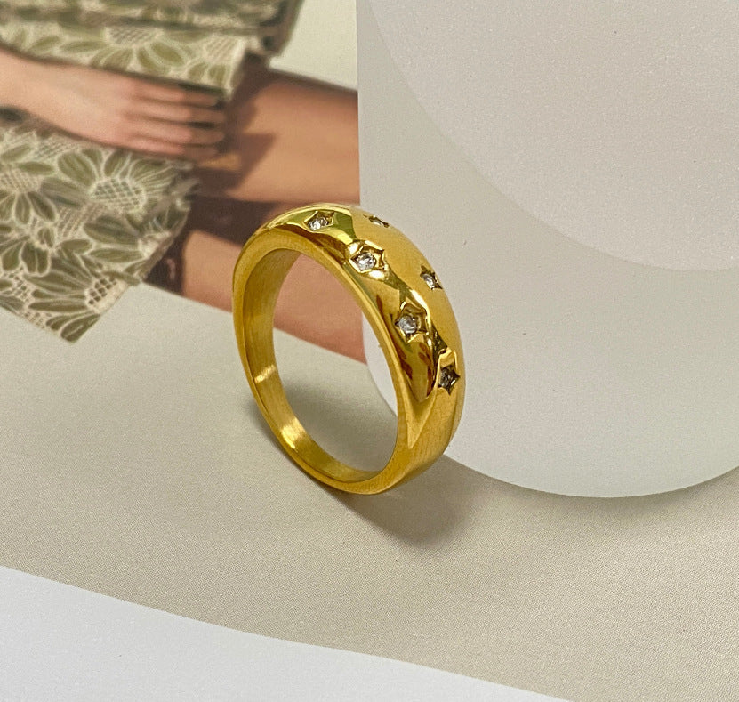 European And American Stainless Steel Ring Five-pointed Star With Diamond Personality