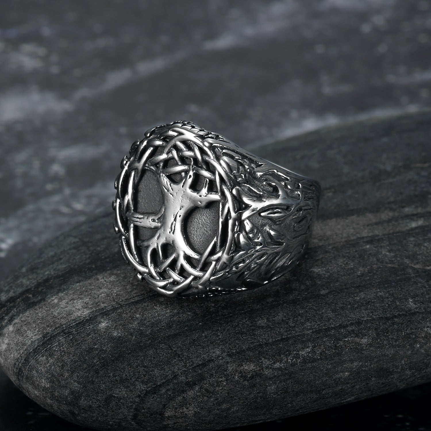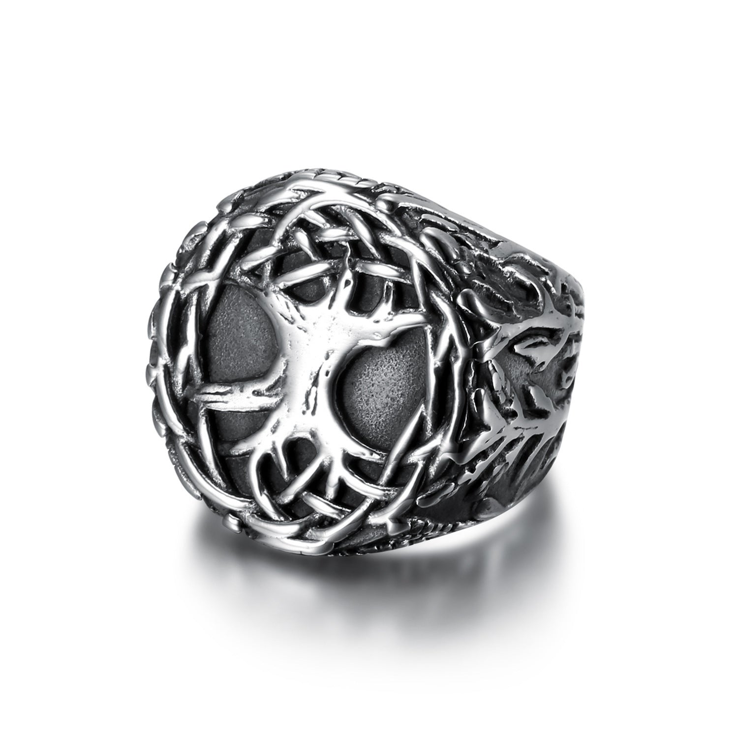 Mens Stainless Steel Lucky Tree Ring Polished Black European American Inspired Statement Jewelry Durable Style