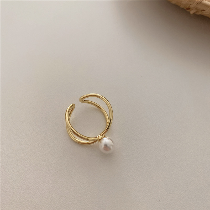 Womens Pearl Cross Ring Adjustable Gold Plated Copper Vintage Fashion Jewelry Quality Durable Versatile Vintage