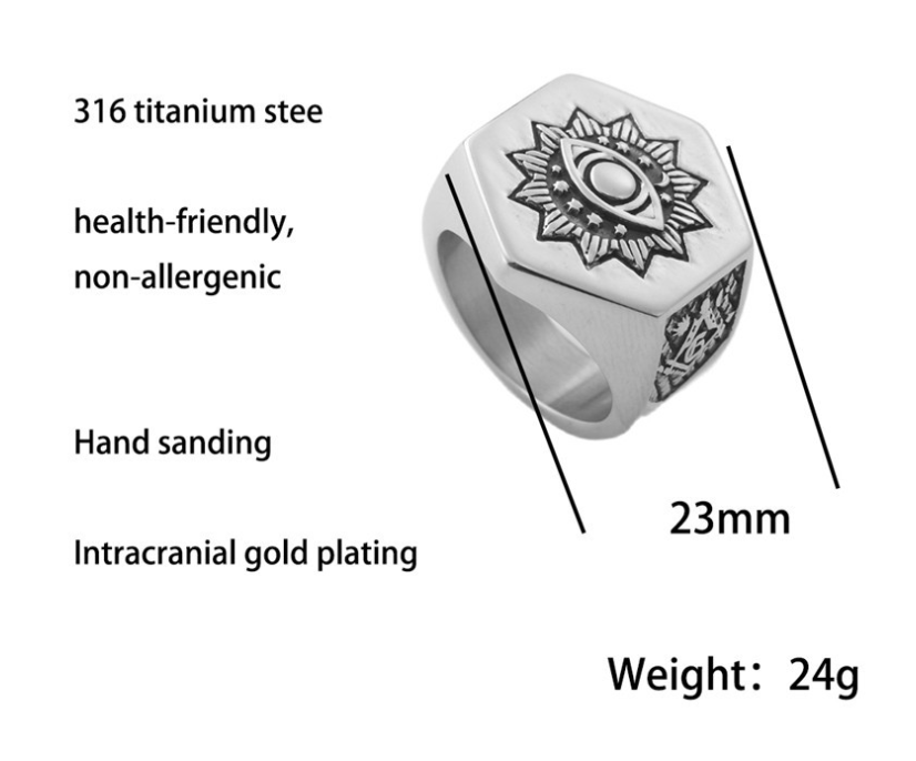 European And American Titanium Steel Masonic Eye Ring Vintage