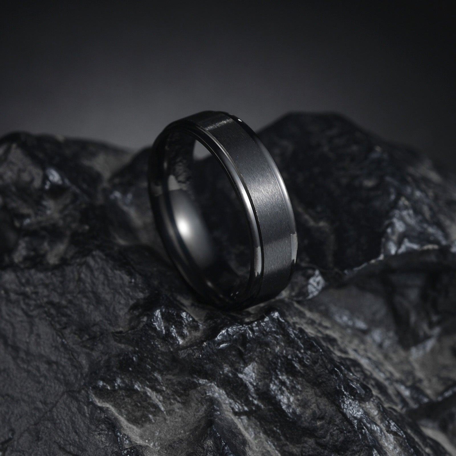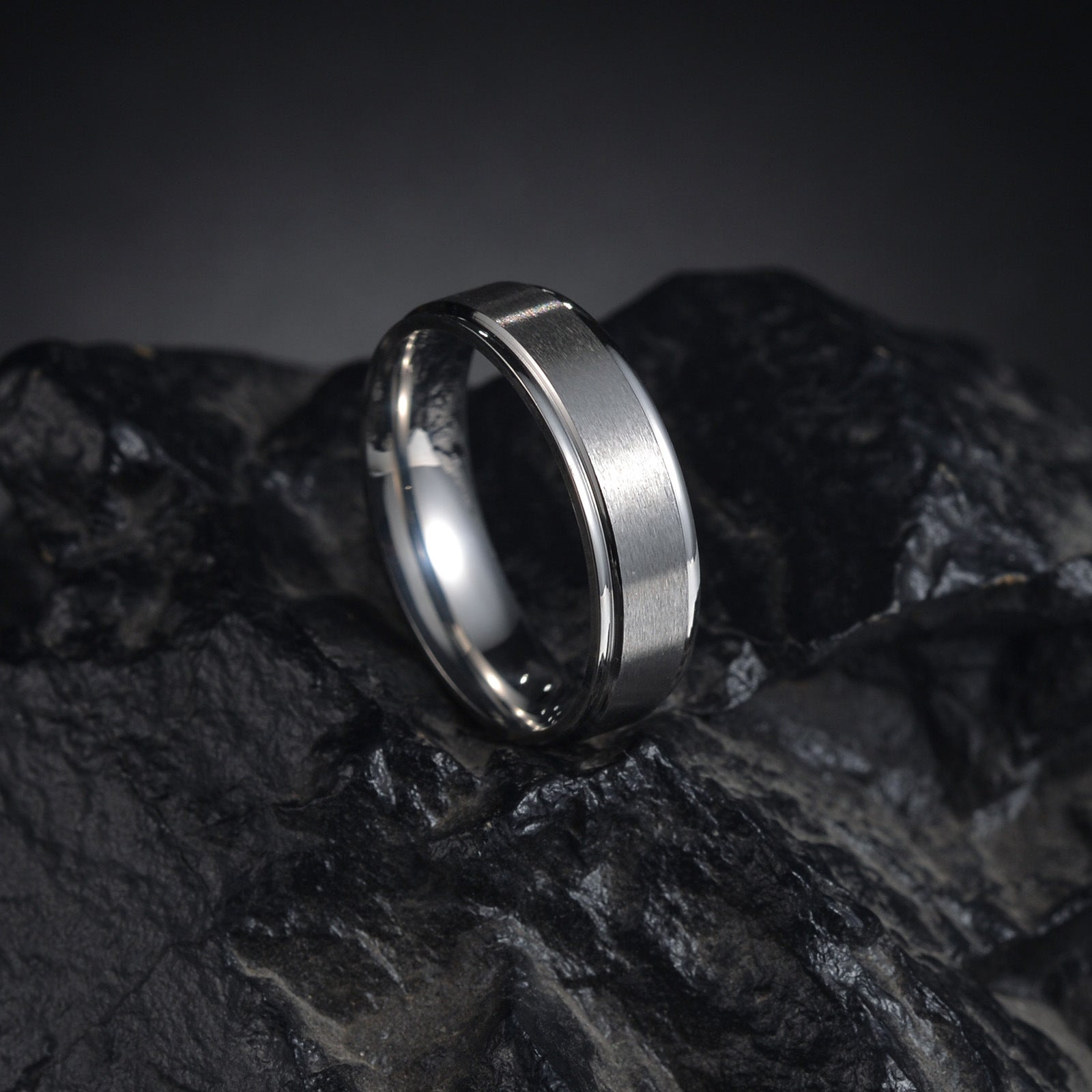 Titanium Steel Ring 6mm Wide Band Step Sand Surface Matte Finish Unisex European Design Ring For Men And Women