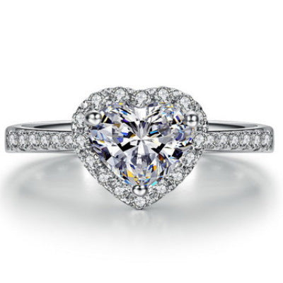 Women Ring Heart Shaped Blue Gemstone White Copper European American Wave Design Sizes 5 6 7 8 9 10 Royal Blue