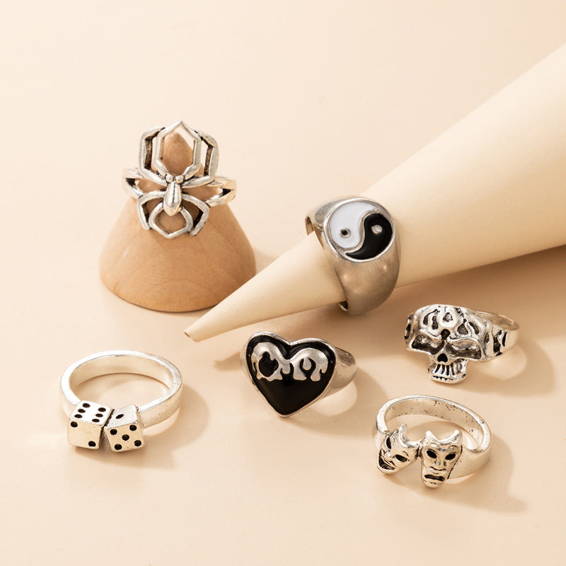 Unisex Gold Plated Geometric Ring With Heart And Skull Design For Halloween And Everyday Wear For Fashion Fans