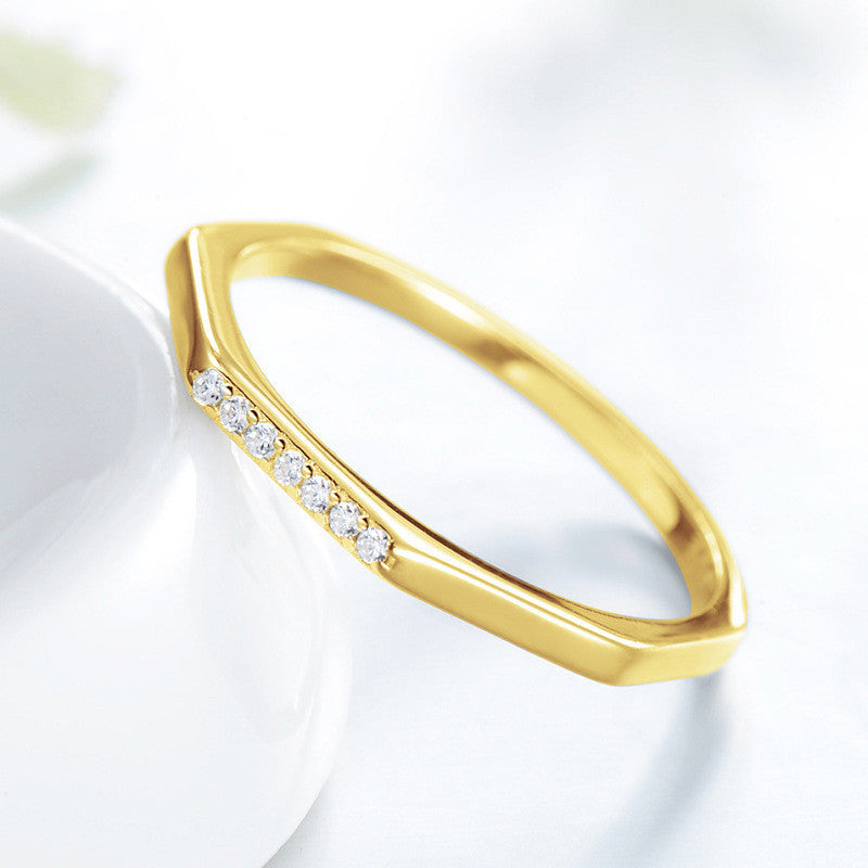 Sterling Silver Hexagon Ring With Micro Inlay Geometric