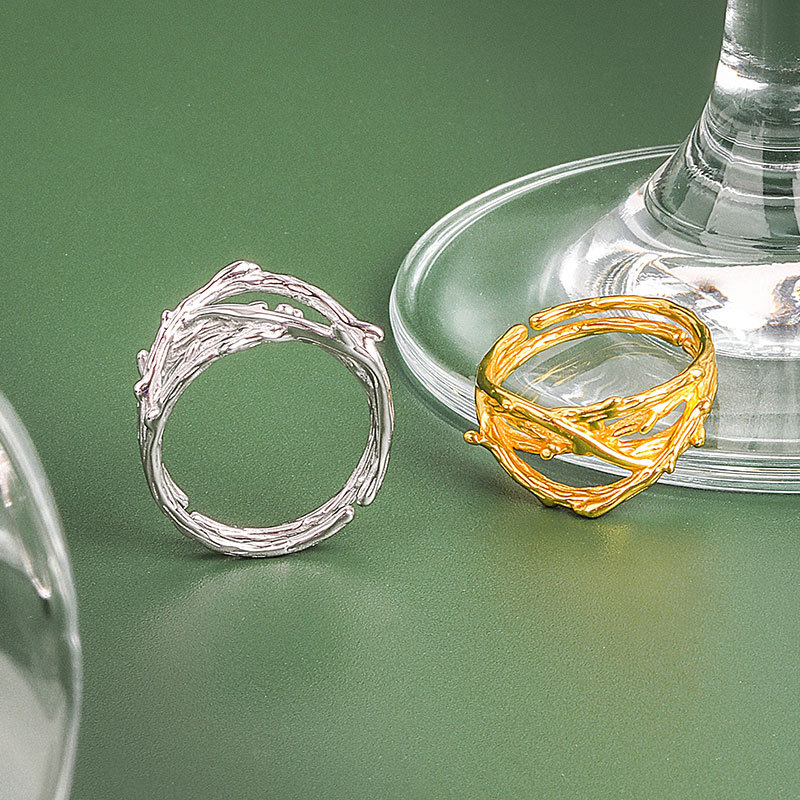 Womens Copper Branch Ring Adjustable Open Irregular Design Trendy Ring Fashion Jewelry Platinum Or Gold Finish