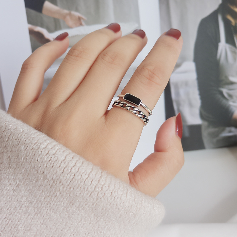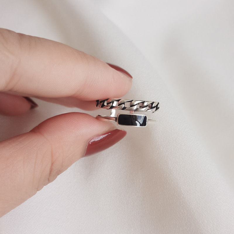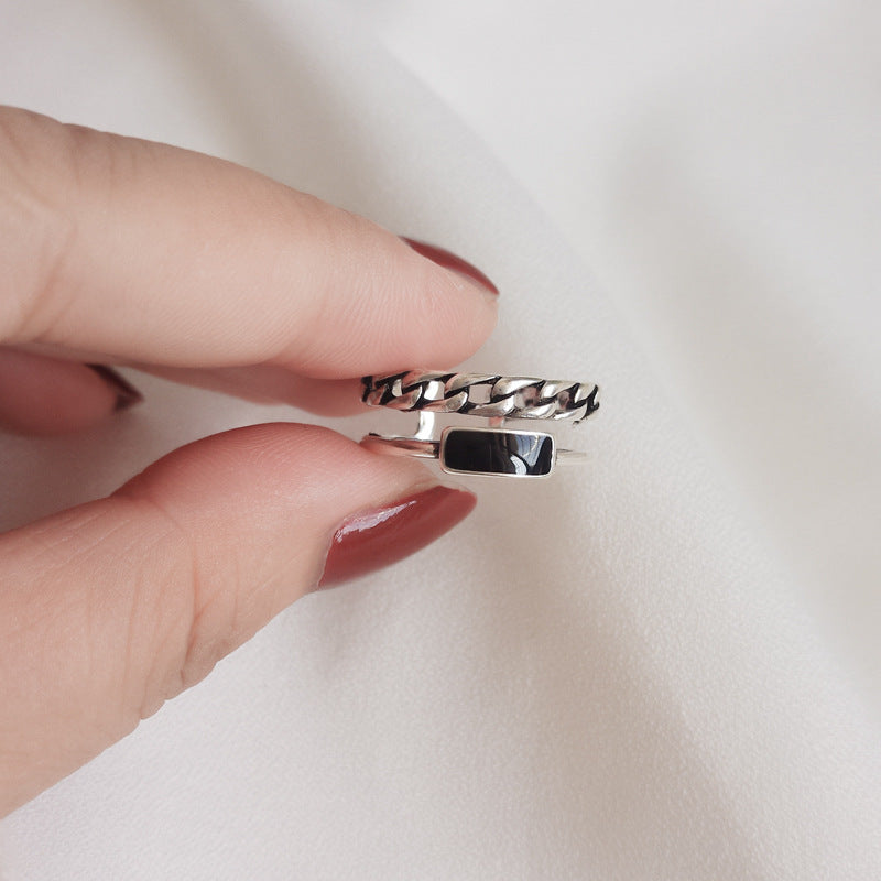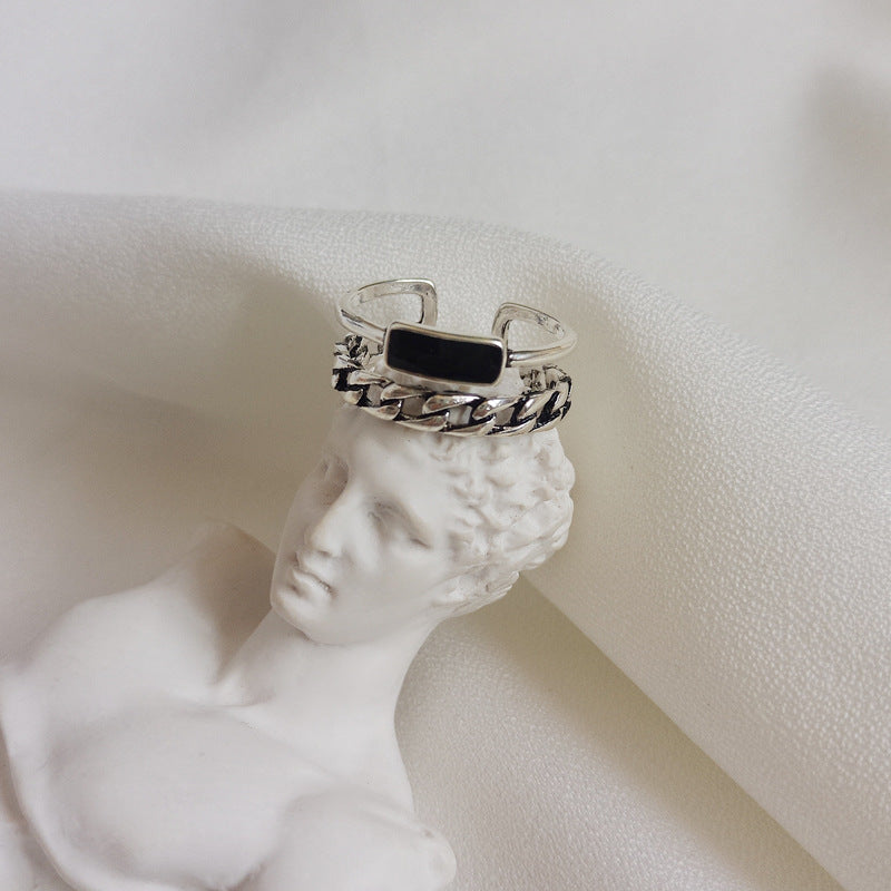Womens Silver Drip Glaze Double Layer Chain Ring Adjustable Fashion Jewelry For Women Elegant Gift For Her Now