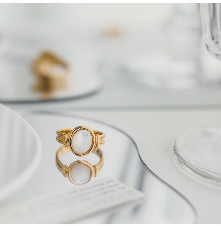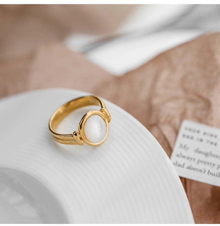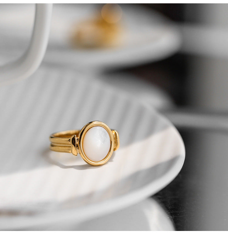Womens Titanium Steel Ring Vintage Golden Fritillary Oval Ring Retro Shell Jewelry Gift For Women Individually Packed