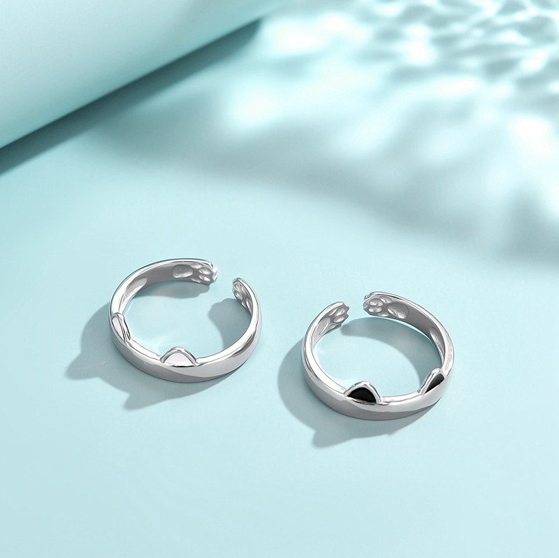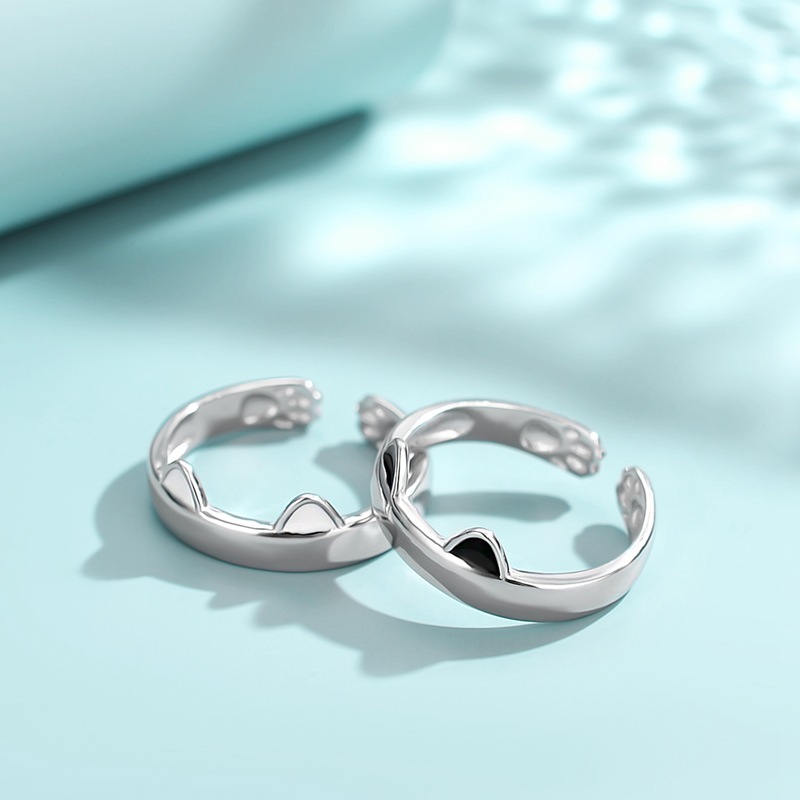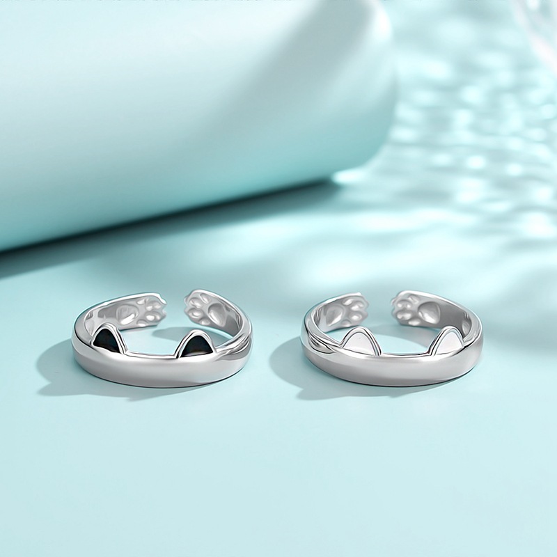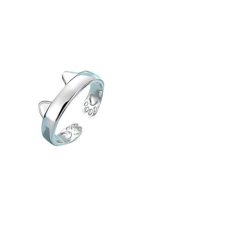 Sterling Silver Adjustable Cat Ear Ring Cute Kitten Ring Zodiac Jewelry 925 Silver Accessory Fashion Gift For All