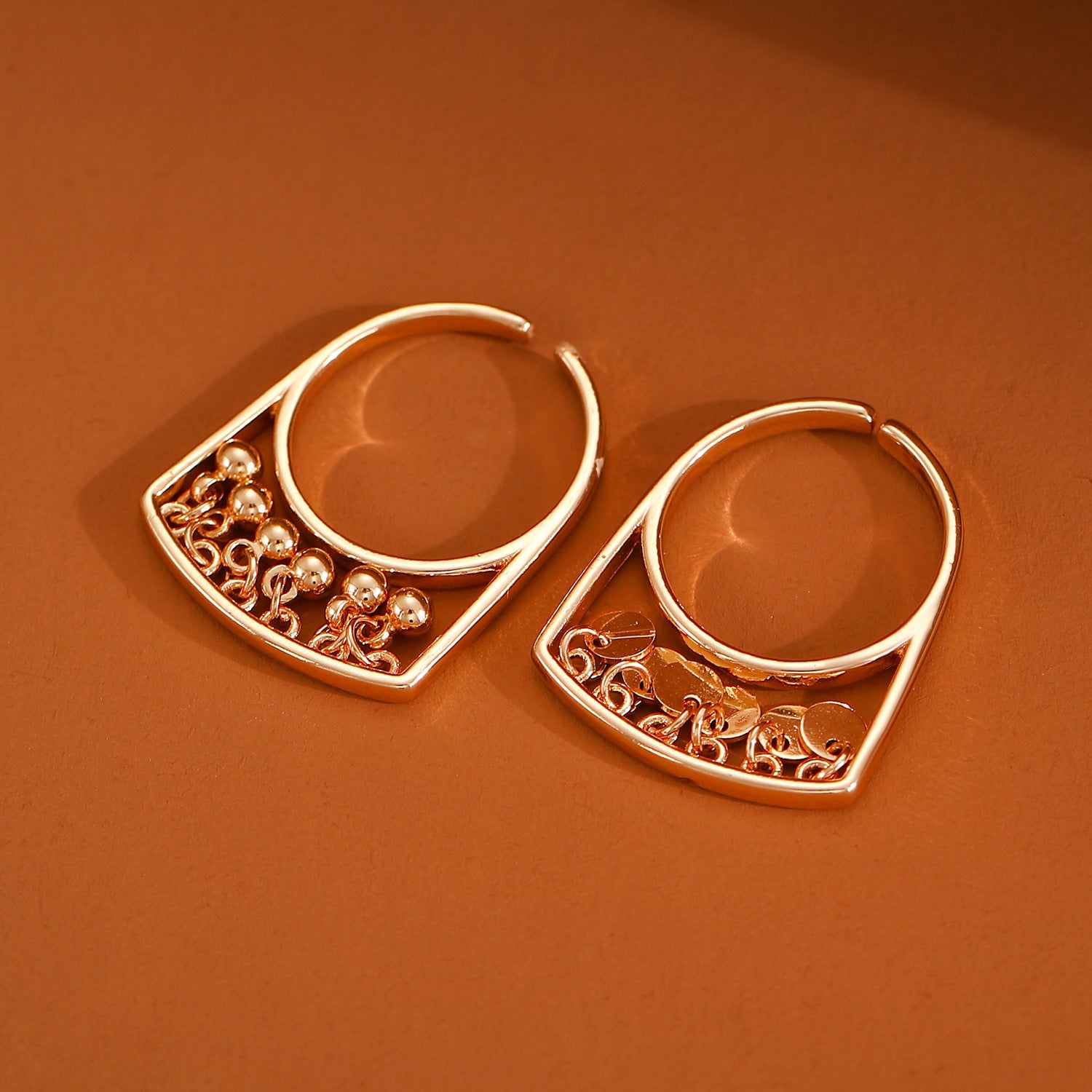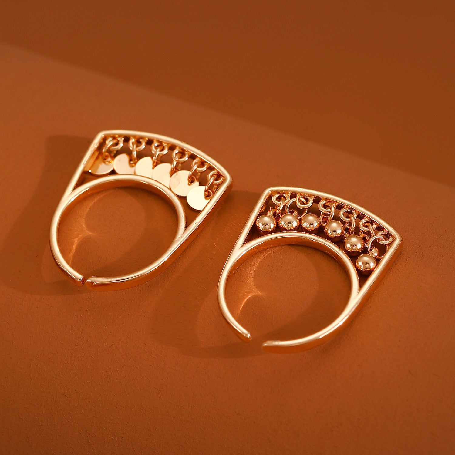 Womens Open Rings Electroplated Copper Geometric Ring Tassel And Circle Lines Design Fashion Jewelry Open Band