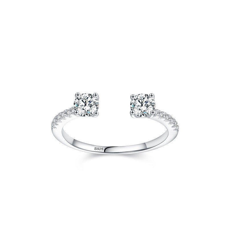 Womens Sterling Silver Ring Geometric Design White Gold Plated Fashion Jewelry Statement Ring For Her Elegance
