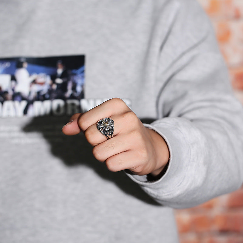 Vintage Copper Ring Adjustable Five Pointed Star Constellation Ring Electroplated Distressed Ring For Women Ring
