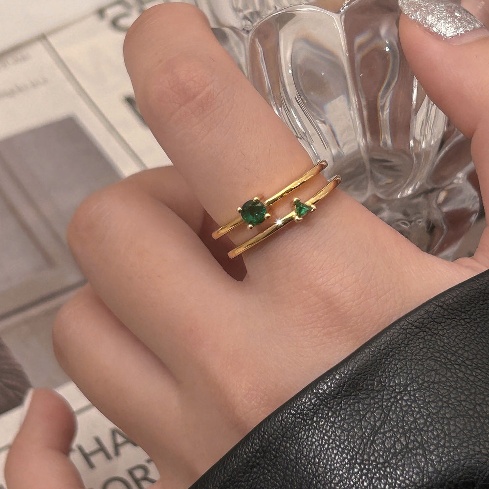 Womens Green Diamond Studded Adjustable Open Ring Copper Electroplated Geometric Jewelry Gift For Her Classics