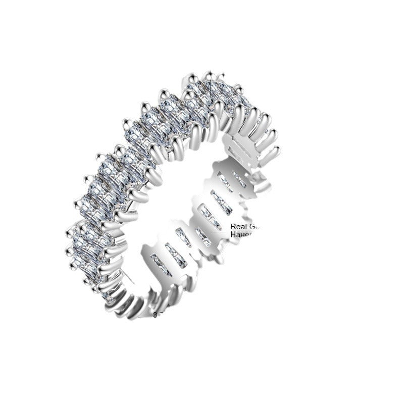 Womens Copper Ring Inlaid Zircon Ladder Design Geometric Square With Gold Inlay Treatment Fashion Jewelry Gift