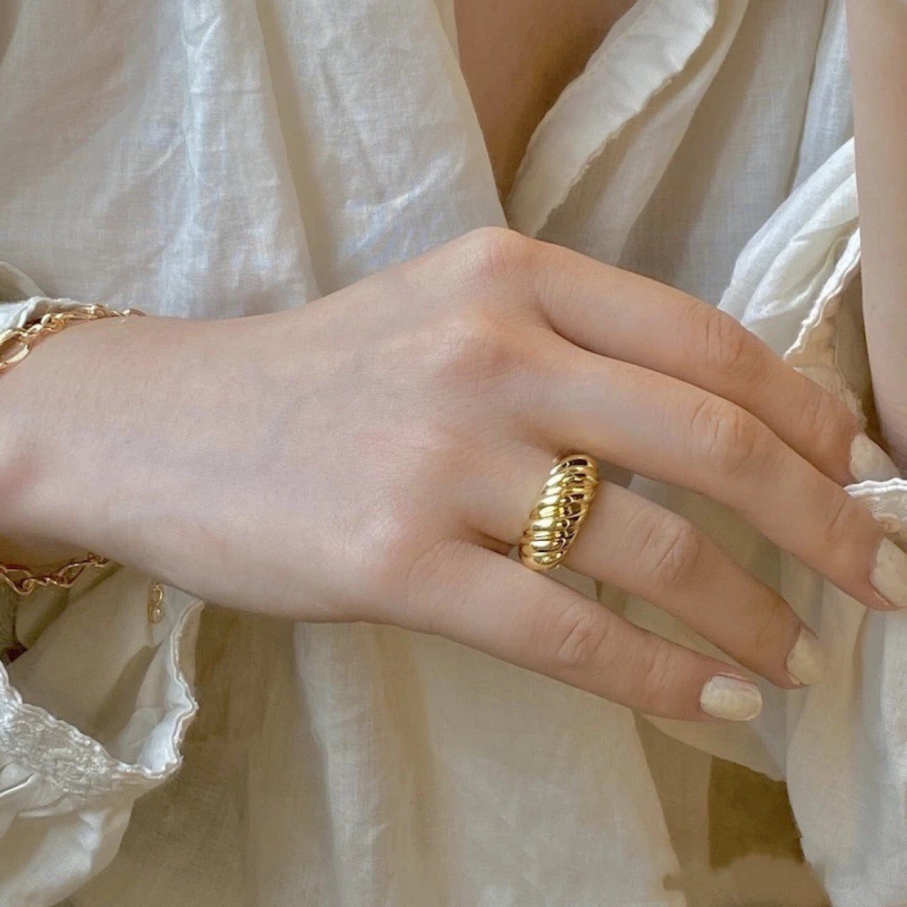 Womens Ring Horn Design Titanium Steel Jewelry Europe and America Fashion 18k Gold Plated Band Ring Statement Ring Gift for Her Size 6 7 and 8