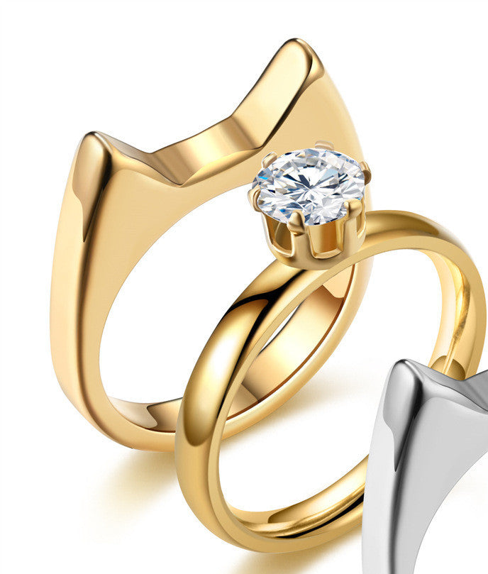 Cat Ear Rings Stainless Steel Polished Cartoon Couple Jewelry Gift For Animal Lovers Golden Zircon Accents Lux