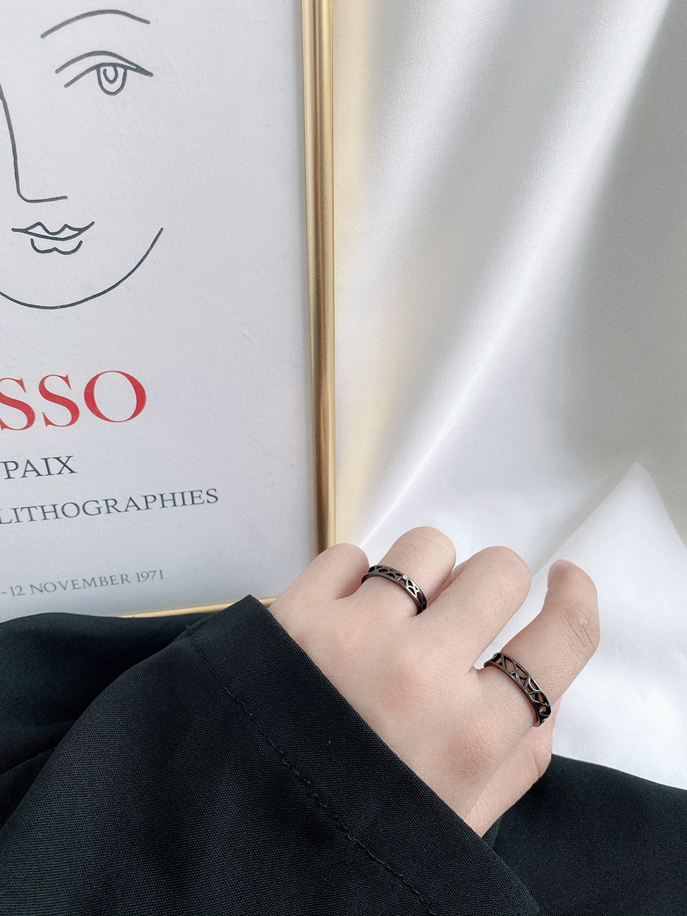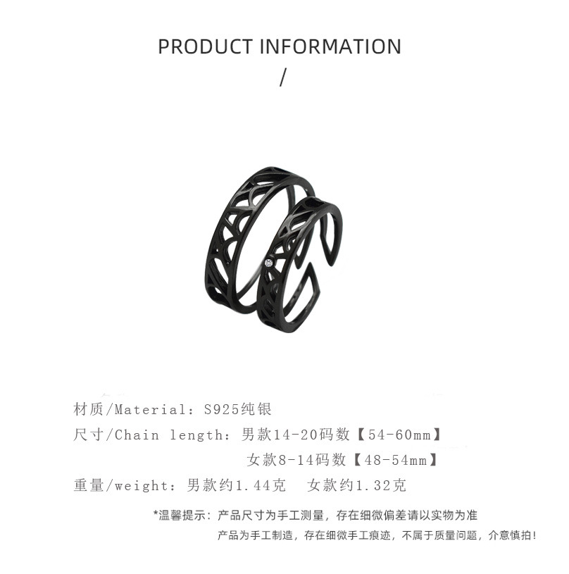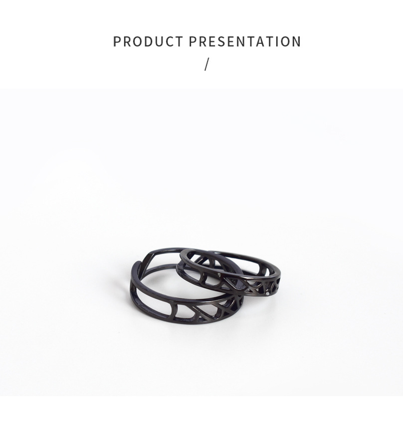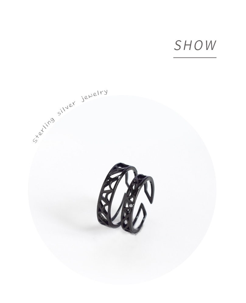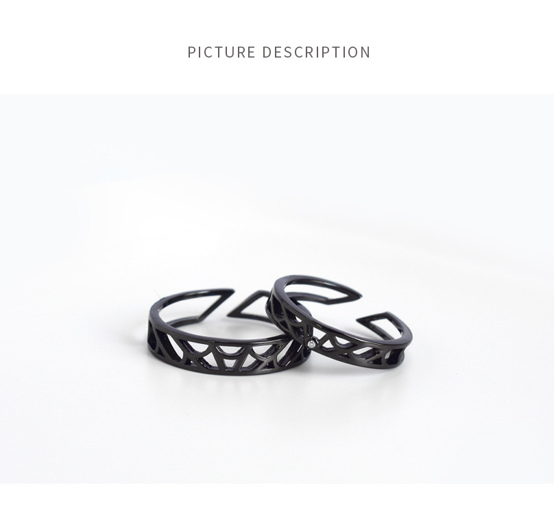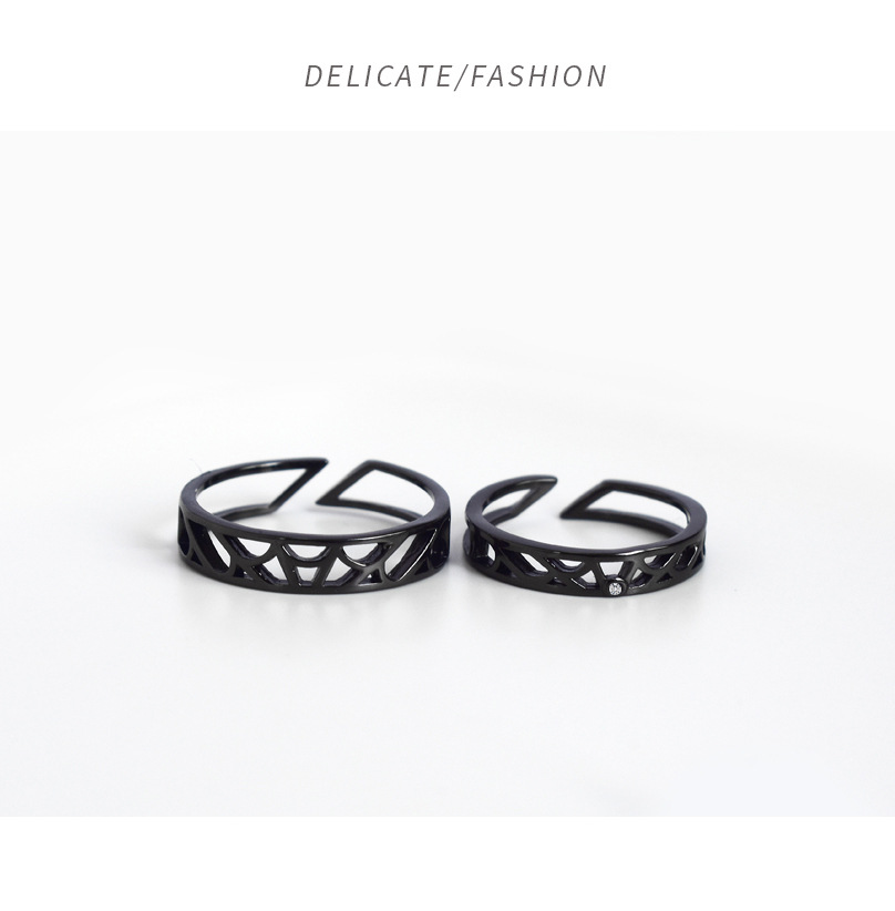 Couple Rings Fashion Jewelry Simple Black Hollow Ring Geometric Silver Ring For Men And Women Anniversary Gift