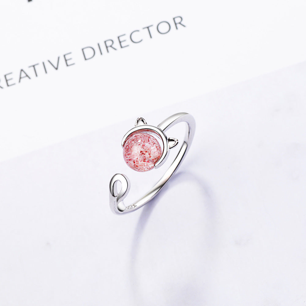 Crystal Kitten Ring Index Womens Adjustable Opening Copper Plated Platinum Finger Ring Fashion Jewelry Gift Her