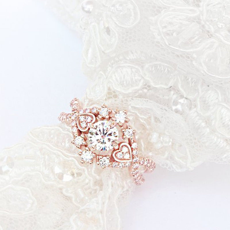 Womens Ring Set Of 3 Fashion Alloy Rings Champagne Rose Gold Plated Rhombus Design Jewelry Gift For Fancy Ring