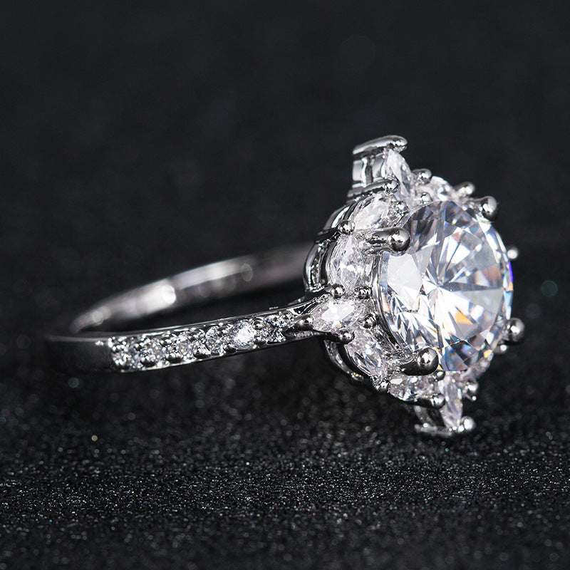 Women's Fashion Ring Round Zircon Inlaid Copper Silver Plated Jewelry For Engagement Gift Versatile For Ladies